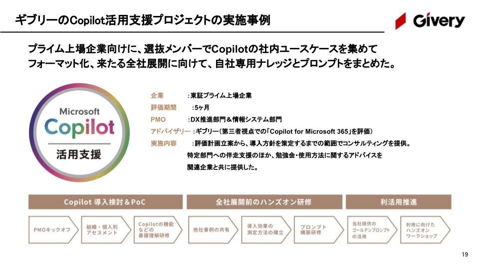 当社は生成AI活用プラットフォーム「法人GAI」の提供を通じて、400以上の企業・行政機関で生成AIの導入・業務活用を支援してきました。そこで蓄積したナレッジをもとに、日本マイクロソフトの Copilot for Microsoft 365導入支援・トレーニングパートナーとして、Copilotの活用を支援する法人向け研修、スキルアセスメント、eラーニングサービスを提供しております。