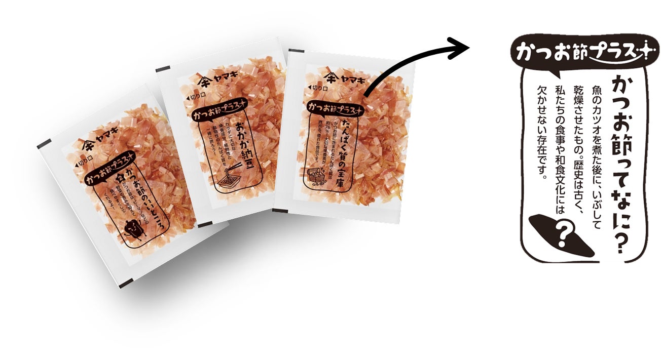 ヤマキは、「鰹節屋・だし屋、ヤマキ。」として鰹節とだしを通じて、「おいしさ」と「健康」、