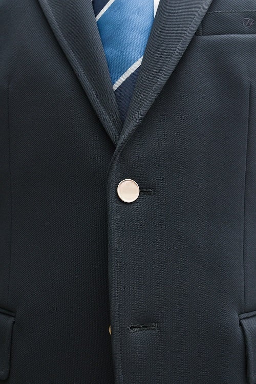 オンワードコーポレートデザインが企画したベース案に対し、「ID UNITED ARROWS」は、細部のデザインを一層洗練させる提案を行いました。スラックスに学校制服では珍しいシャドーチェック柄を、ネクタイとリボンにはレジメンタルストライプ柄を採用し、無地のメタリックなボタンをデザインのアクセントに取り入れました。