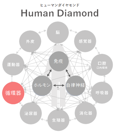 カラダとココロは、さまざまな器官が影響し合い、バランスを保つことで健康を維持しています。当社は、その関わりを「ヒューマンダイヤモンド」と名付けました。運動器や消化器、呼吸器などの全身の器官に着目し、その機能や関連する機能にアプローチするプロダクトやサービスを提供しています。