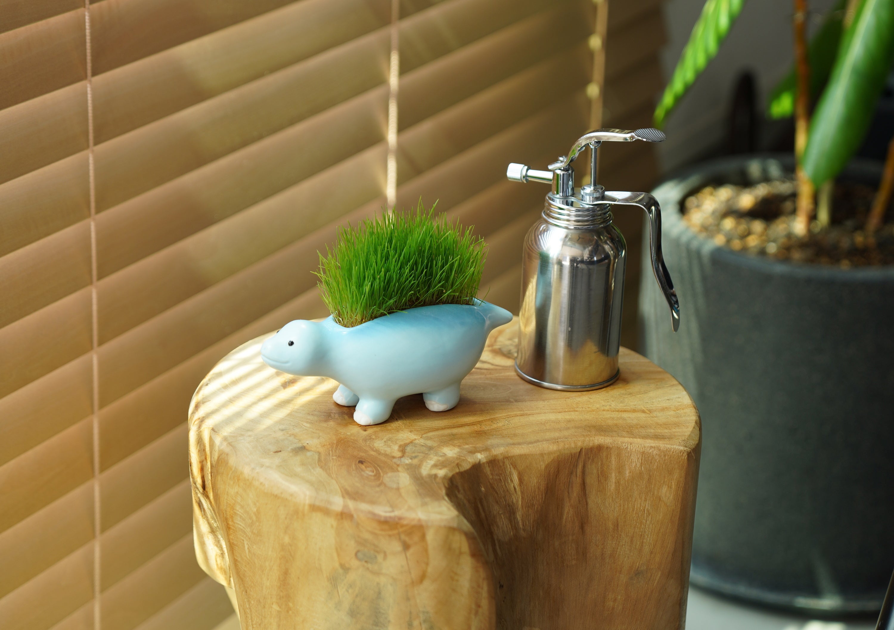 プランターに専用スポンジをセットし、水を含ませたら種を均等にまいていきましょう。日光と水を適度に与えて育てていくと、次第に芝が成長してきます。