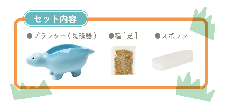 恐竜型のプランター(陶磁器)と専用のスポンジ、