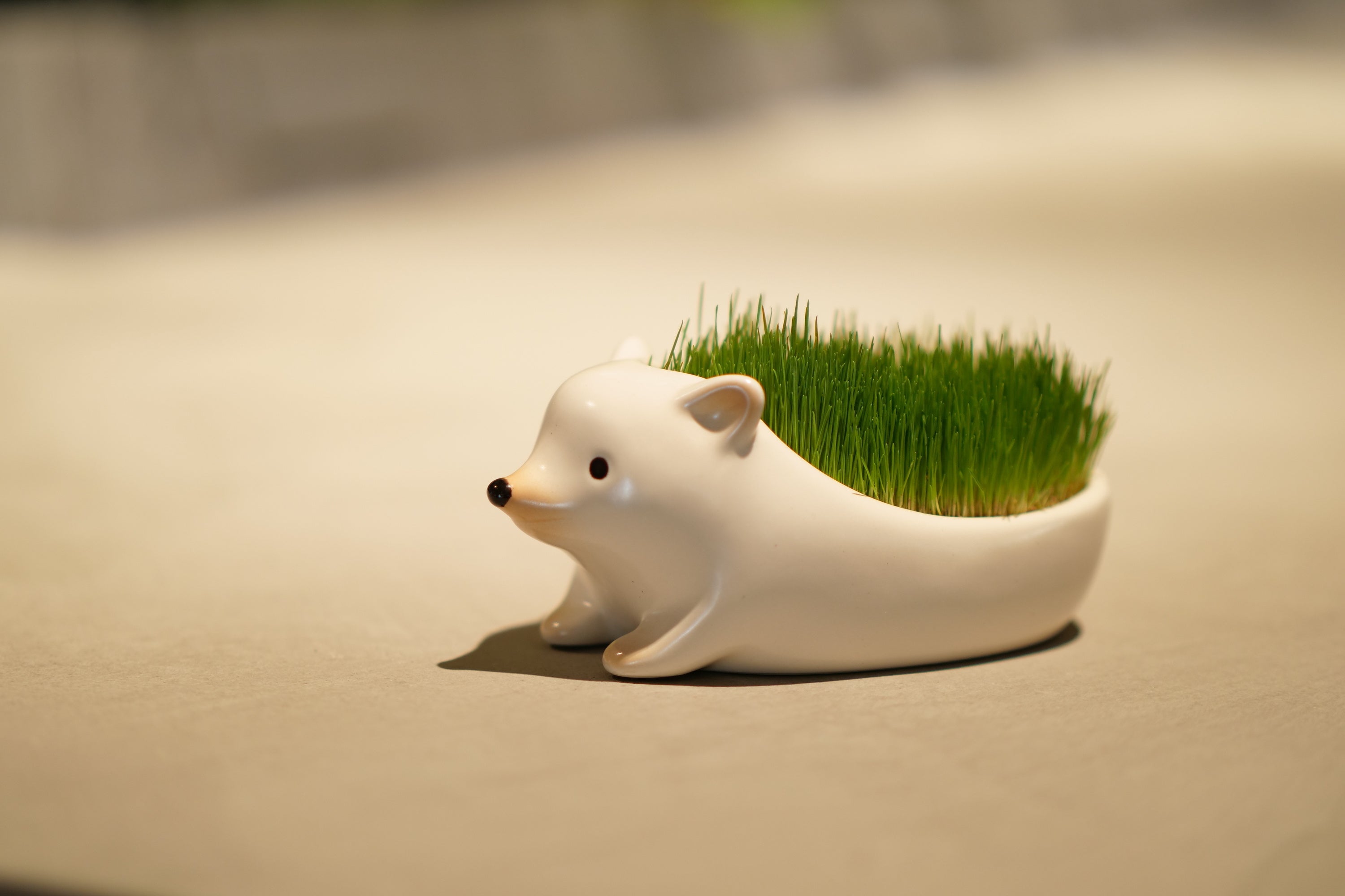現在販売中のハリネズミ型プランターでは、芝タイプとクローバータイプの2種を展開中。
