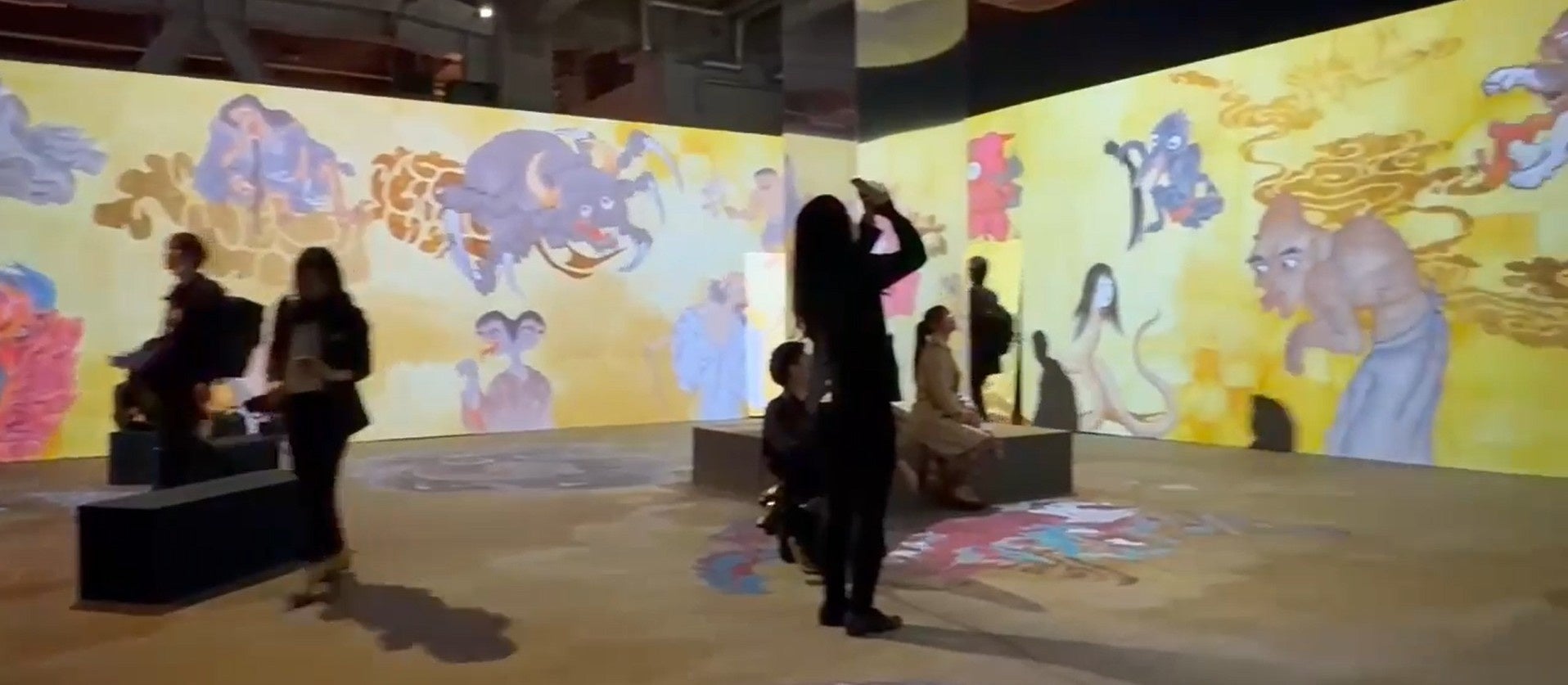 「動き出す妖怪展」は、江戸・明治時代など様々な絵師によって描かれた「百鬼夜行絵巻」「百物語」「鬼」「天狗」「河童」「付喪神」など日本が誇る妖怪美術に最先端の映像技術と立体造形で没入できる世界初のイマーシブ体感型デジタルアートミュージアムです。古代日本の神話や伝承など豊かな想像力から生まれ、時代を超えて世界の人々に愛される日本の妖怪たち。妖怪画・戯画に描かれたそのユーモラスな姿を、3DCGやプロジェクションマッピング、ホログラフィックスクリーンといった最先端のデジタル技術を駆使してダイナミックに躍動させるとともに、立体造形によりリアルな妖怪の世界を再現しています。(https://www.yokaiimmersive.com/より)