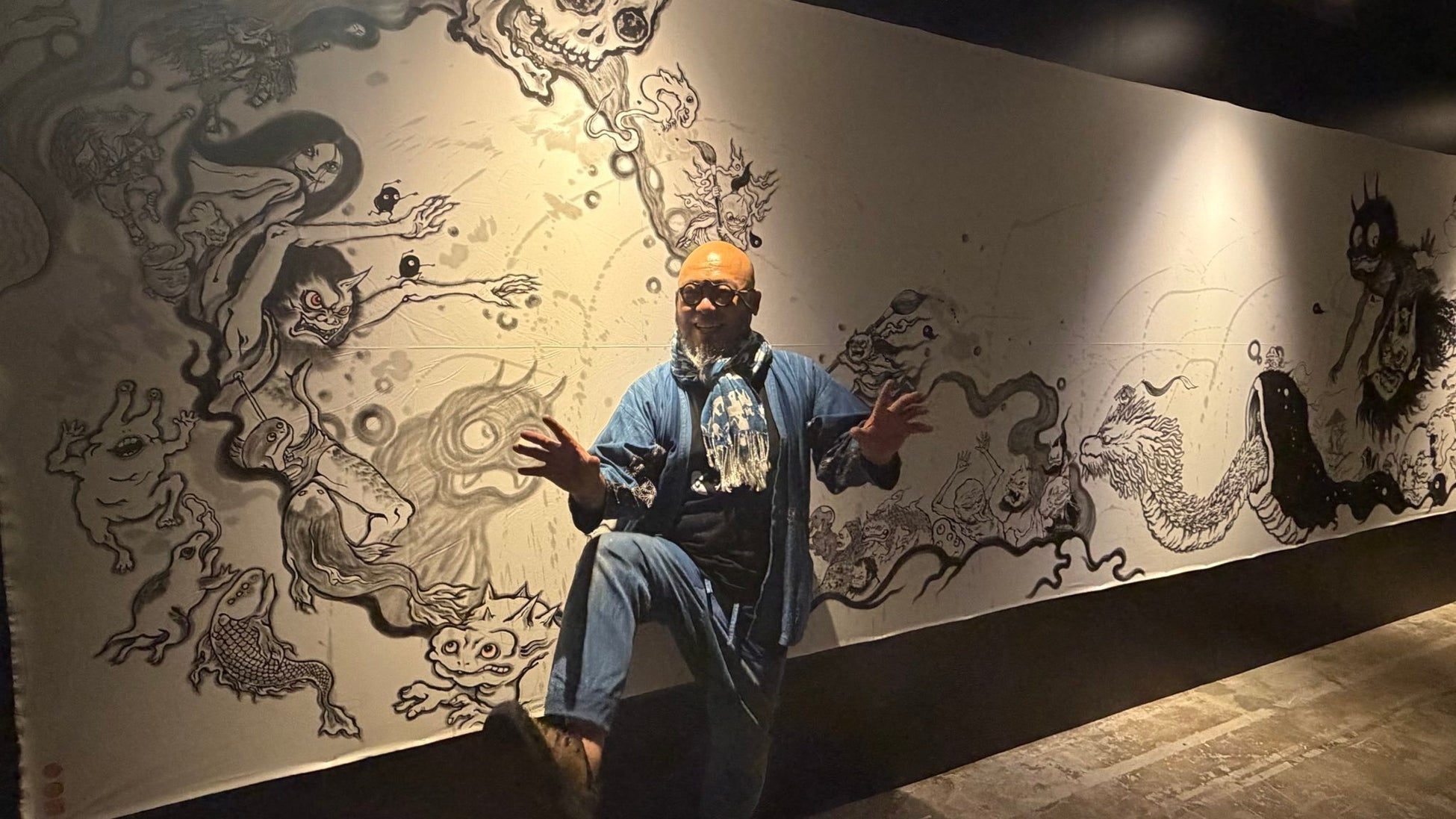 柳生忠平(妖怪画家・妖怪美術館館長)の7mの布画、動き出す妖怪画が圧巻