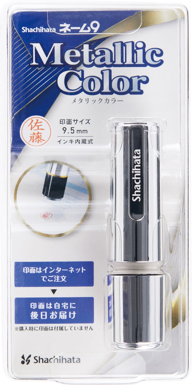 この度発売する「ネーム9 メタリックカラー」は、深みのあるメタリックカラーのネーム印です。カラーは、シルバーメタリック、ゴールドメタリック、グレーメタリック、ブラウンメタリック、レッドメタリック、ブルーメタリックの全6種類。美しい特別感のある色合いは、大切な人へのギフトとしても最適です。