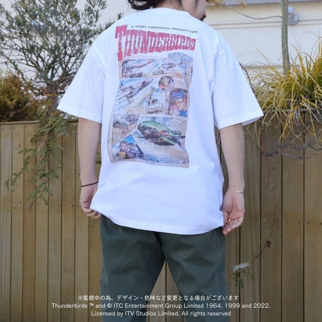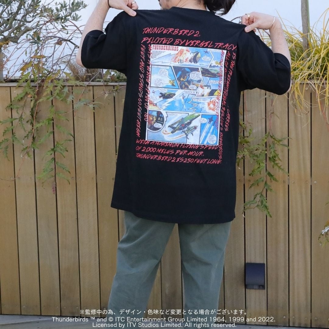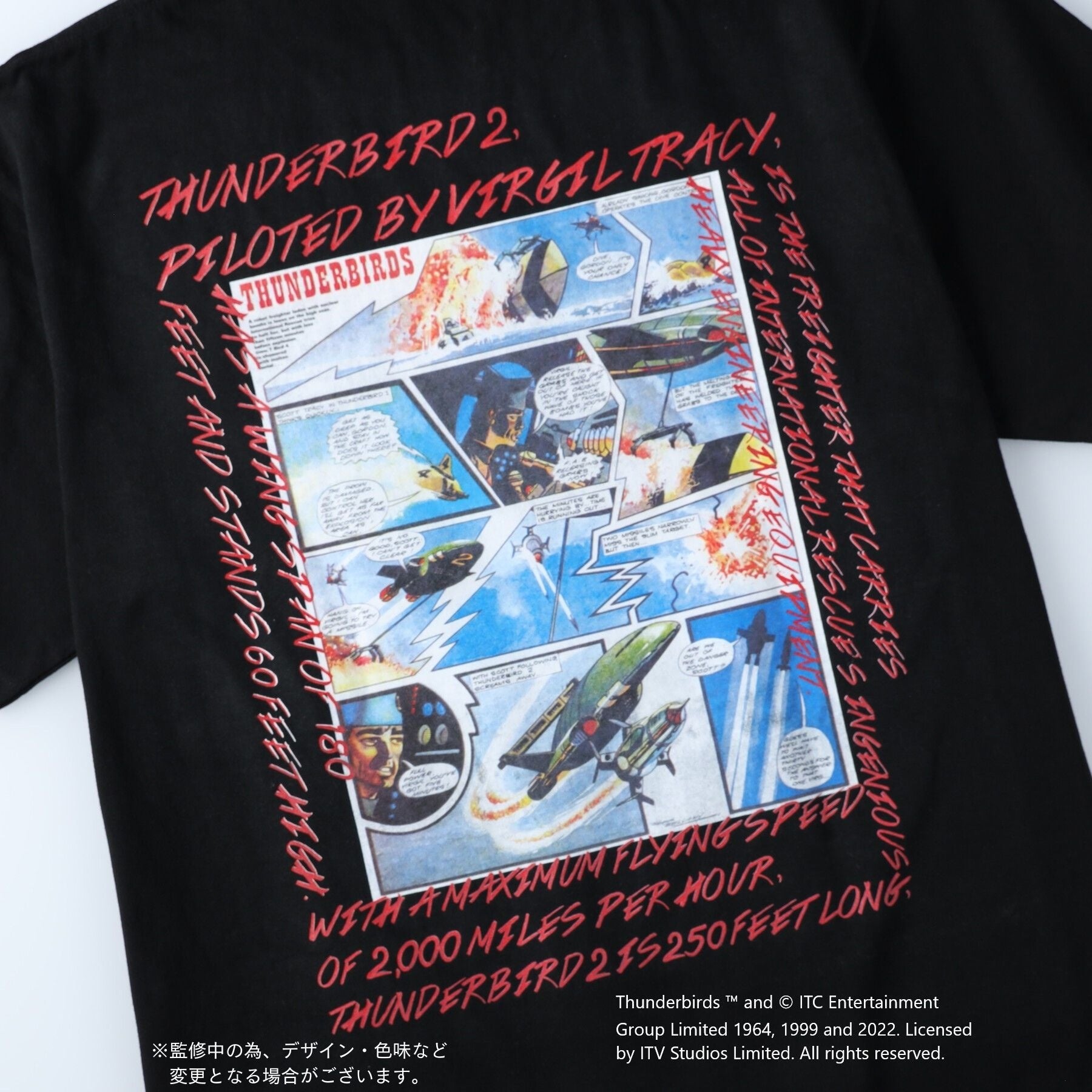 背面に『サンダーバード』のロゴと、コミックの1ページをプリントした半袖Tシャツ。かすれたようなプリントで、世界観を表しています。胸元には、今回の主役であるレディ・ペネロープがプリントされています。