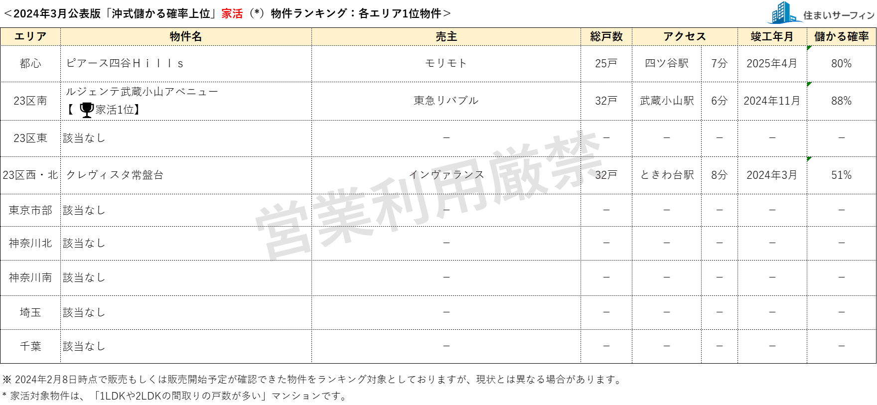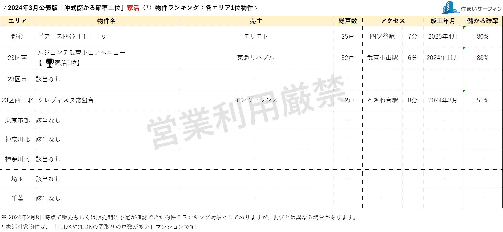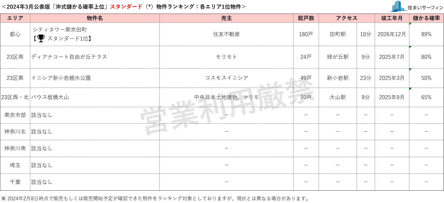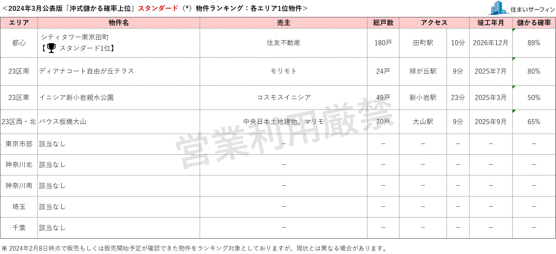 3月公表分は、2024年2月8日時点で販売もしくは販売予定が確認できた物件を対象としています。