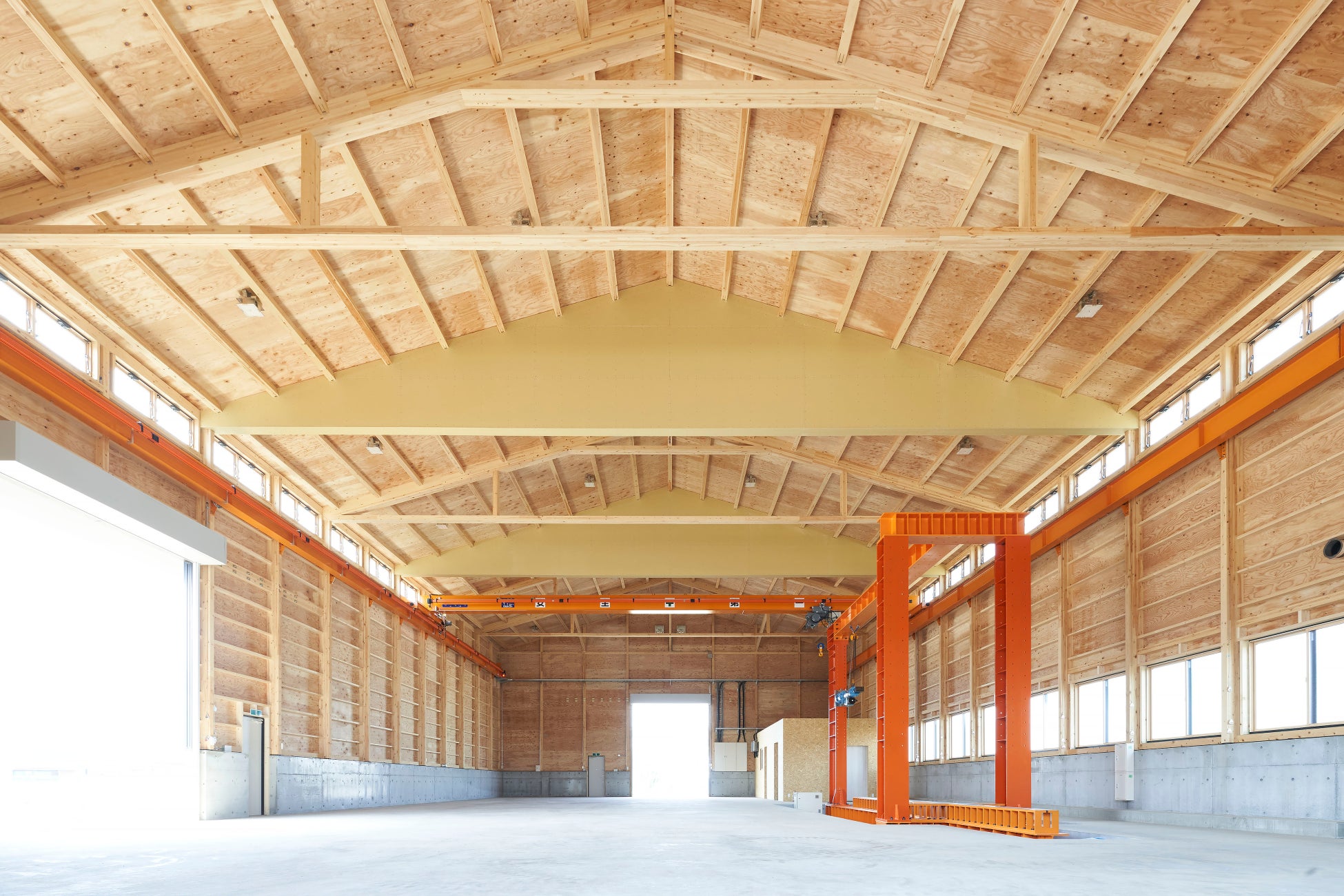 住宅用一般流通材のみを使用した500㎡超の無柱大空間