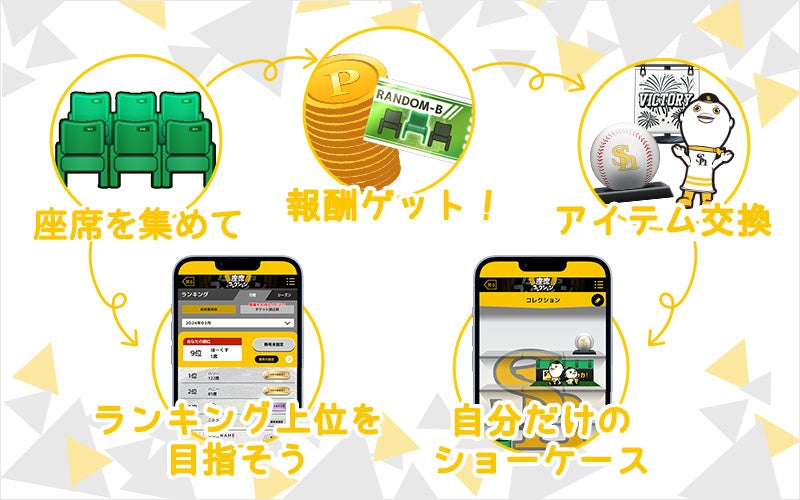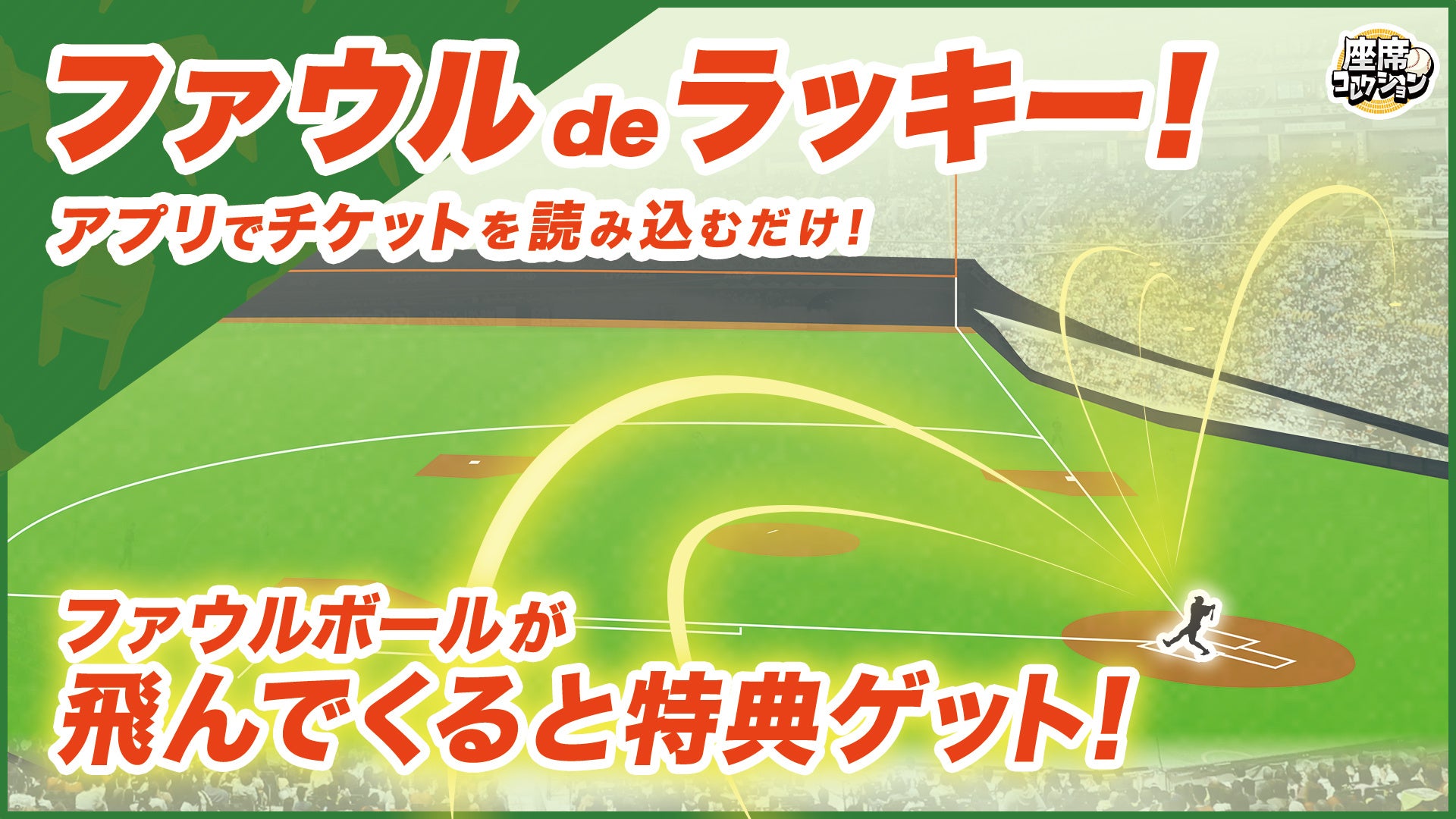 ファウルボールによる事故を防ぐために、打球の行方により注目して欲しい!ファウルボールを1つの見どころにすることで、ファンの皆さんにさらに野球観戦を満喫して欲しい!という思いから2日間限定で、チケットを読み込むとご自身の座っているエリアにファウルボールが飛んできたら特典をもらえるイベントを座席コレクションで開催します。