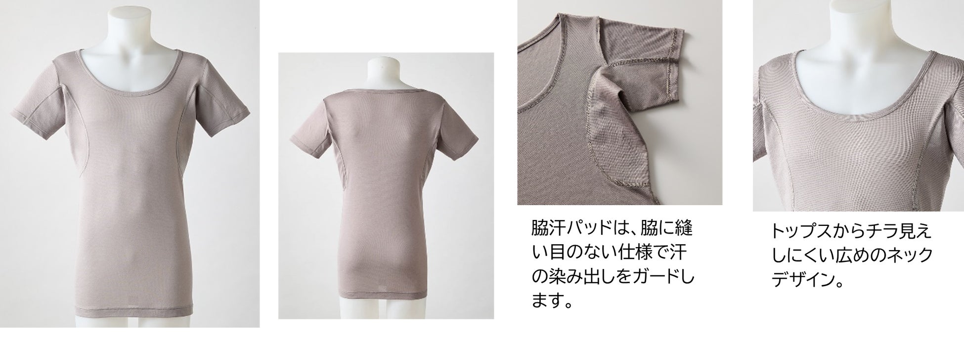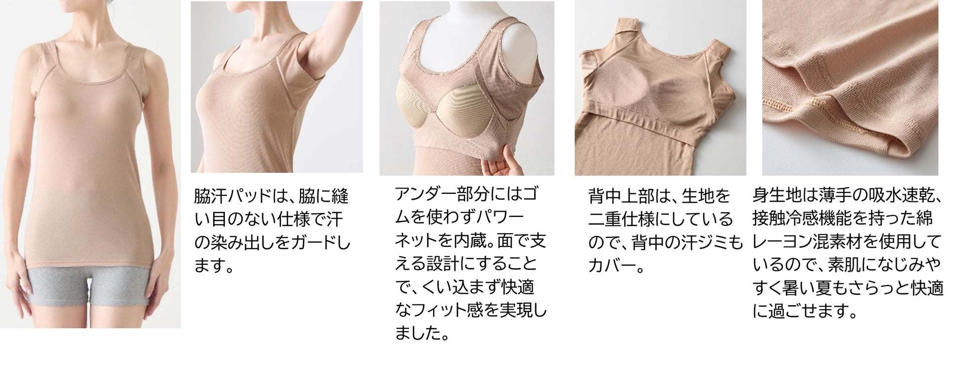 脇汗・汗ジミ・汗のベタベタやニオイなど、汗のお悩みを解消し、快適に過ごせるよう開発したベルメゾンオリジナルの汗取りインナーシリーズです。