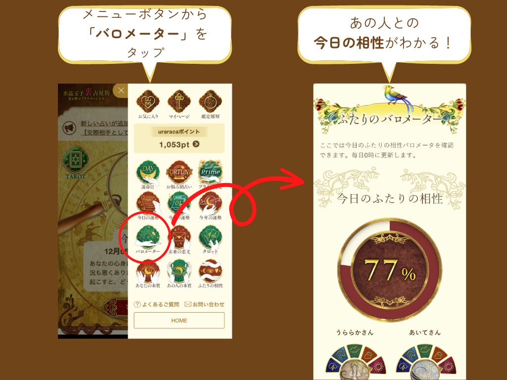 自分の運勢だけではなく、気になる人や恋人との運気の変わり目もお知らせしてくれます。