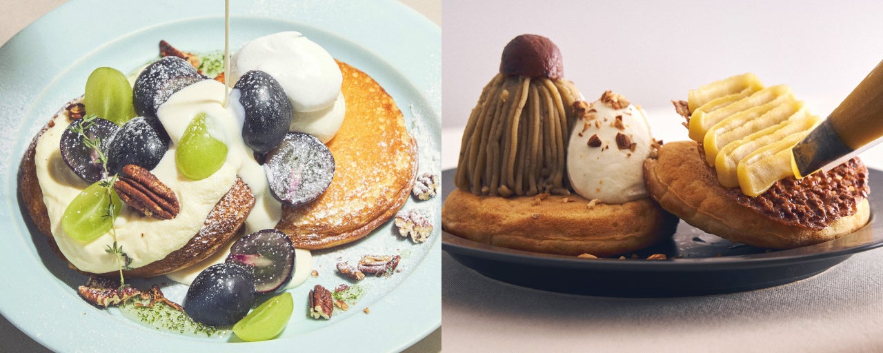 茨城県産“和栗”と長崎県五島市産“蜜芋”がダブルで楽しめる、秋の味覚たっぷりのパンケーキが登場。
