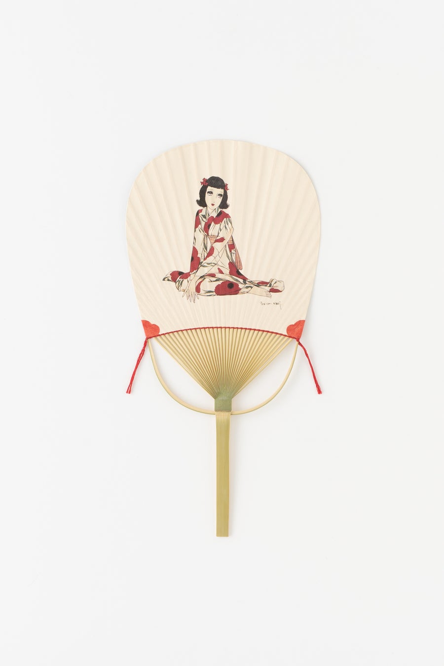 香川県丸亀市周辺で受け継がれる伝統工芸「丸亀うちわ」。職人の手により一点ずつ丁寧に作られています。ゆかたのモチーフとなったイラスト「赤い花」の女の子と、「ひまわり」のデザインで制作しました。両面で異なる表情を楽しめるデザインと、サイドに揺れる紐がポイントです。オリジナルパッケージで展開します。