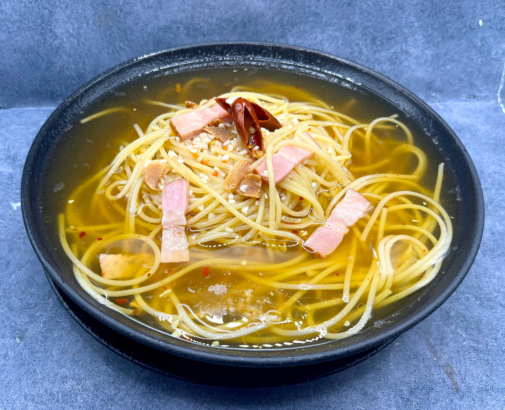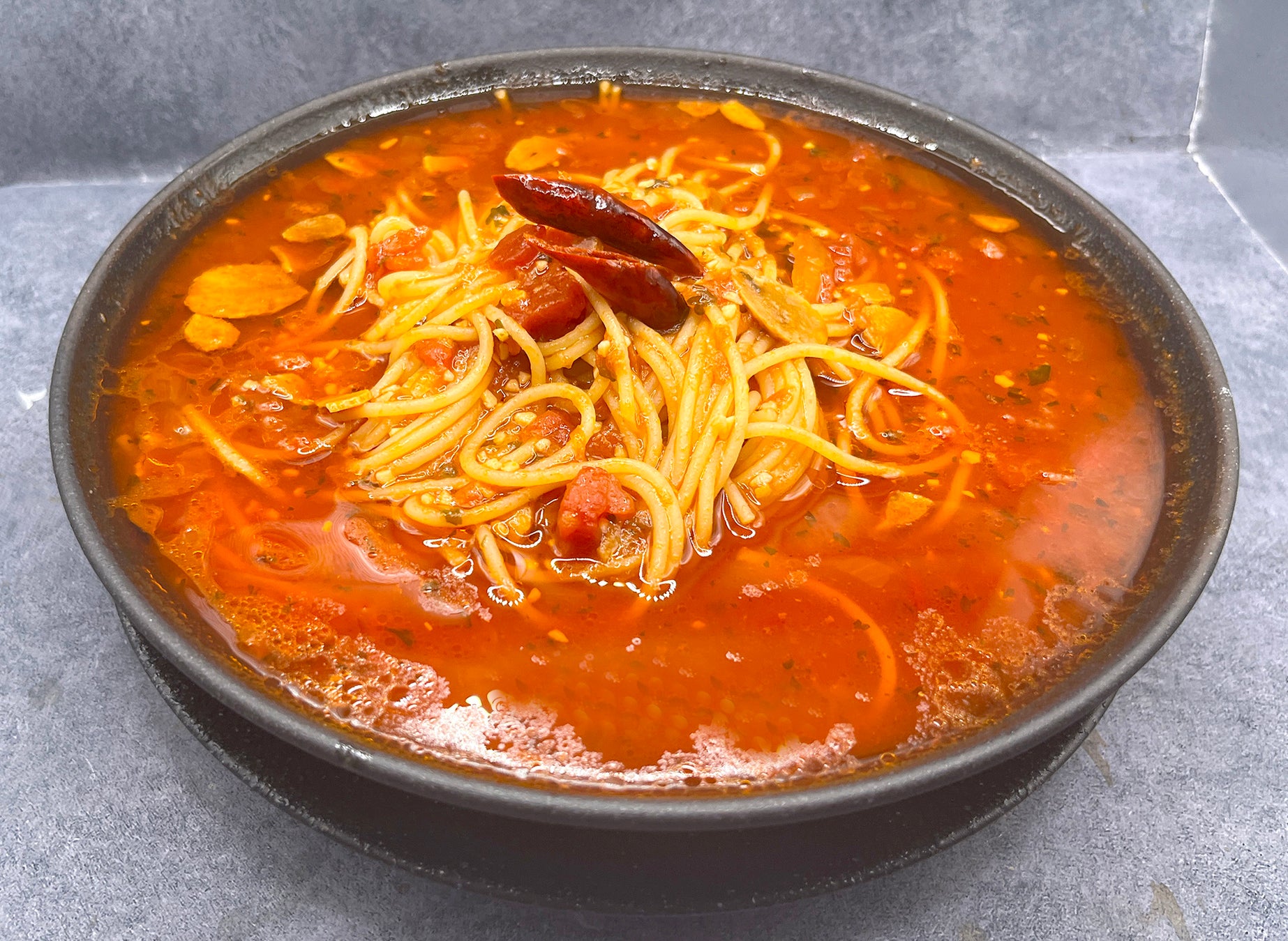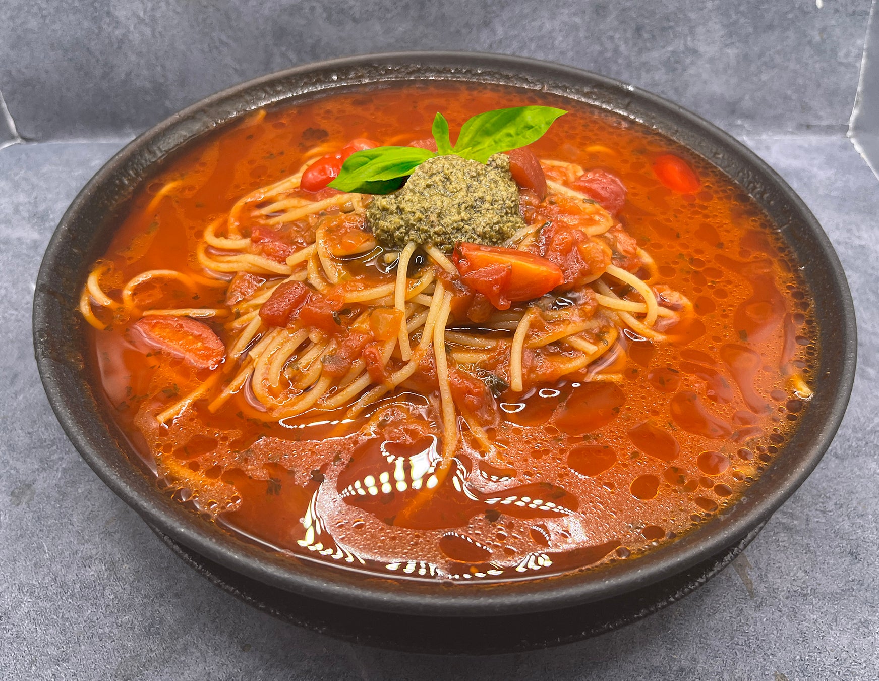たっぷりの完熟トマトをベースに香ばしいスライスガーリックとピリッと効いた唐辛子をアクセントに加えた『トマトのニンニクの唐辛子のスープスパゲッティ』にんにくと唐辛子の香りが広がる黄金スープにアルデンテのスパゲッティを合わせ、ベーコンの旨みとフライドガーリックがアクセント!シンプルながら満足感のある『ペペロンチーノのスープスパゲッティ』完熟トマトのやさしい甘みと酸味に香り豊かなとろけるバジリコペーストを合わせた『バジリコとトマトのスープスパゲッティ』などなど...少しずつ冷え込む秋のランチにぴったりの“温活グルメ”『スープスパゲッティ』を是非ご賞味ください♪