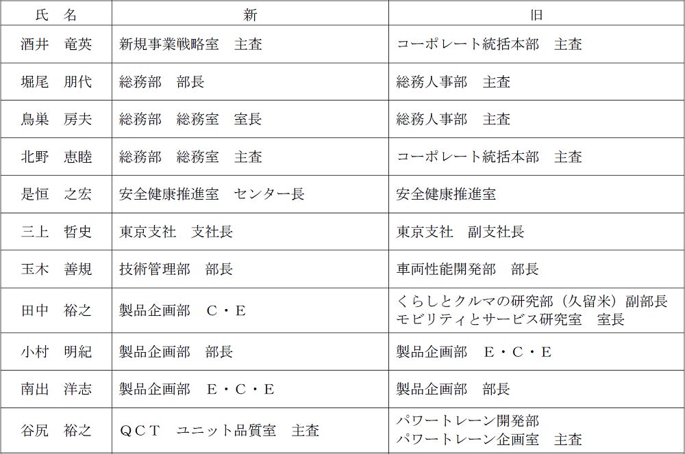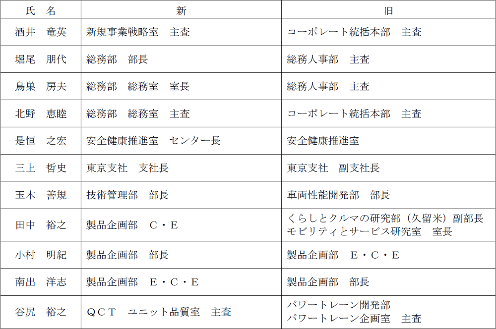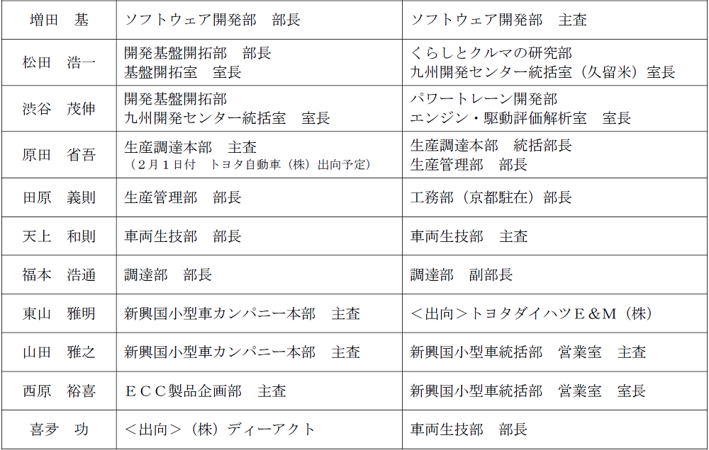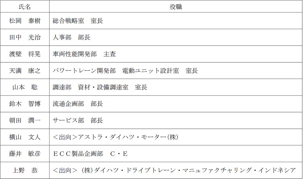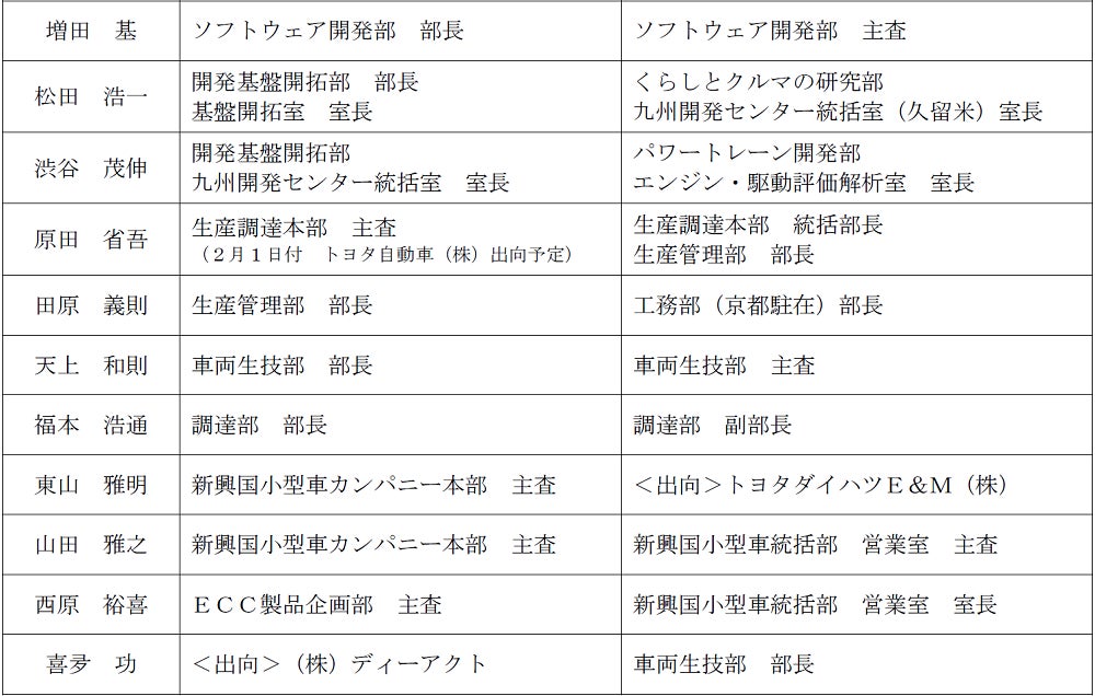 ダイハツ工業株式会社は、2023年1月1日付で下記の通り、幹部職の昇格・人事異動を行います。