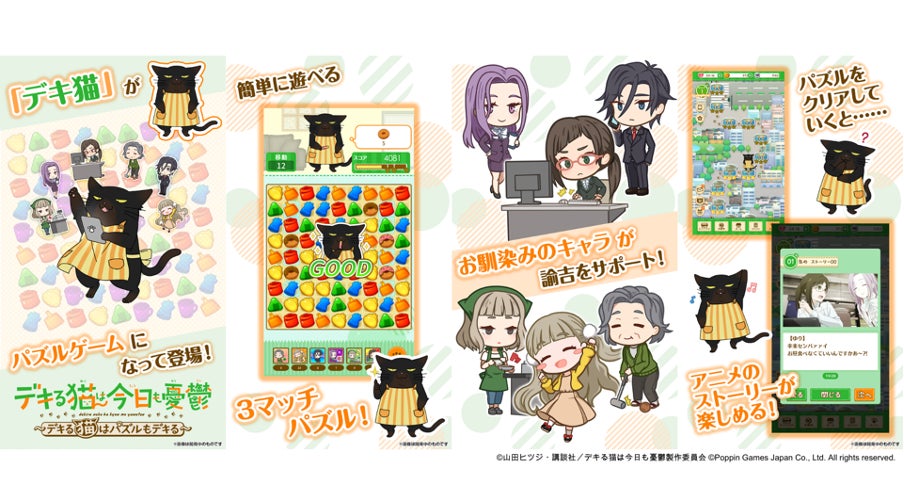 ポッピンゲームズジャパン株式会社(本社:東京都港区、代表取締役 CEO:谷口祐一郎)は、TV アニメ「デキる猫は今日も憂鬱」(略称:デキ猫)の新作スマートフォン向けパズルゲーム「デキる猫は今日も憂鬱〜デキる猫はパズルもデキる〜」(略称:パズ猫)は、2025年3月30日(日)よりリリースから半年を迎えます。迎えられる0.5周年を記念して、【タキシード】諭吉が手に入るログインボーナスや【トランプ遊び】諭吉の壁紙がもらえる限定パックの販売など、特別なキャンペーンを実施いたします。