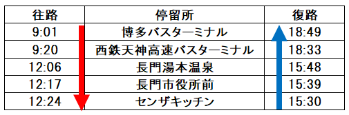 博多バスターミナル~西鉄天神高速バスターミナル~長門湯本温泉~長門市役所前~センザキッチン
