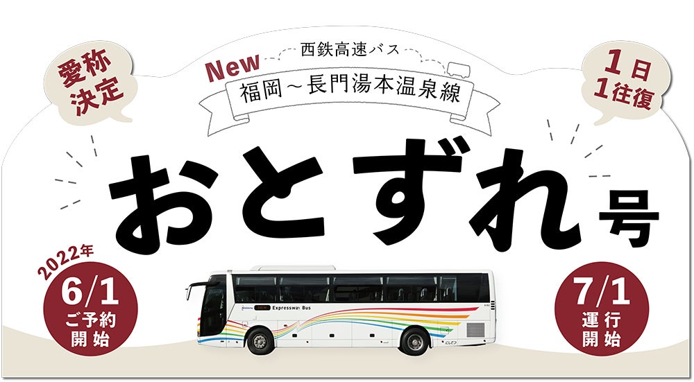 西日本鉄道株式会社(本社:福岡市博多区、代表取締役社長執行役員:林田浩一、以下、「西鉄」)が、2022年7月1日(金)から運行を開始する「福岡~長門湯本温泉線」の愛称が「おとずれ号」に決定いたしました。