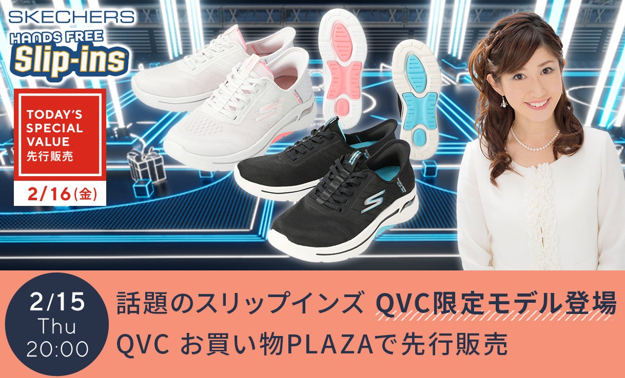 お買い物チャンネルQVCがMetaMe®上で2023年12月15日より期間限定で公開中のショッピング空間「メタバースQVCお買い物PLAZA」。本空間を活用したライブイベントの一つとして、アメリカ・LA生まれのフットウェアブランドSKECHERS(以下、スケッチャーズ)の最新作からQVC限定モデル「スケッチャーズ アーチフィット スリップインズ ワイドスニーカー」をご紹介いたします。2024年2月16日(金)0時の放送に先駆けて、2月15日(木)20時より本空間内限定で先行販売予定です。