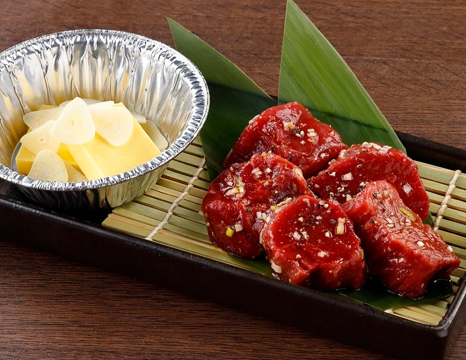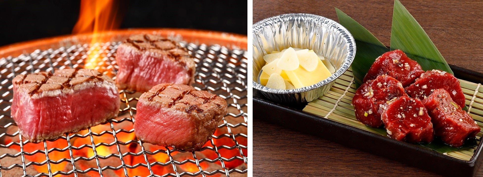 牛角上カルビ、上ハラミ、熟成牛ヒレの3種が楽しめるお得な「熟成3種盛り」1,080円(税込1,118円)も販売します。