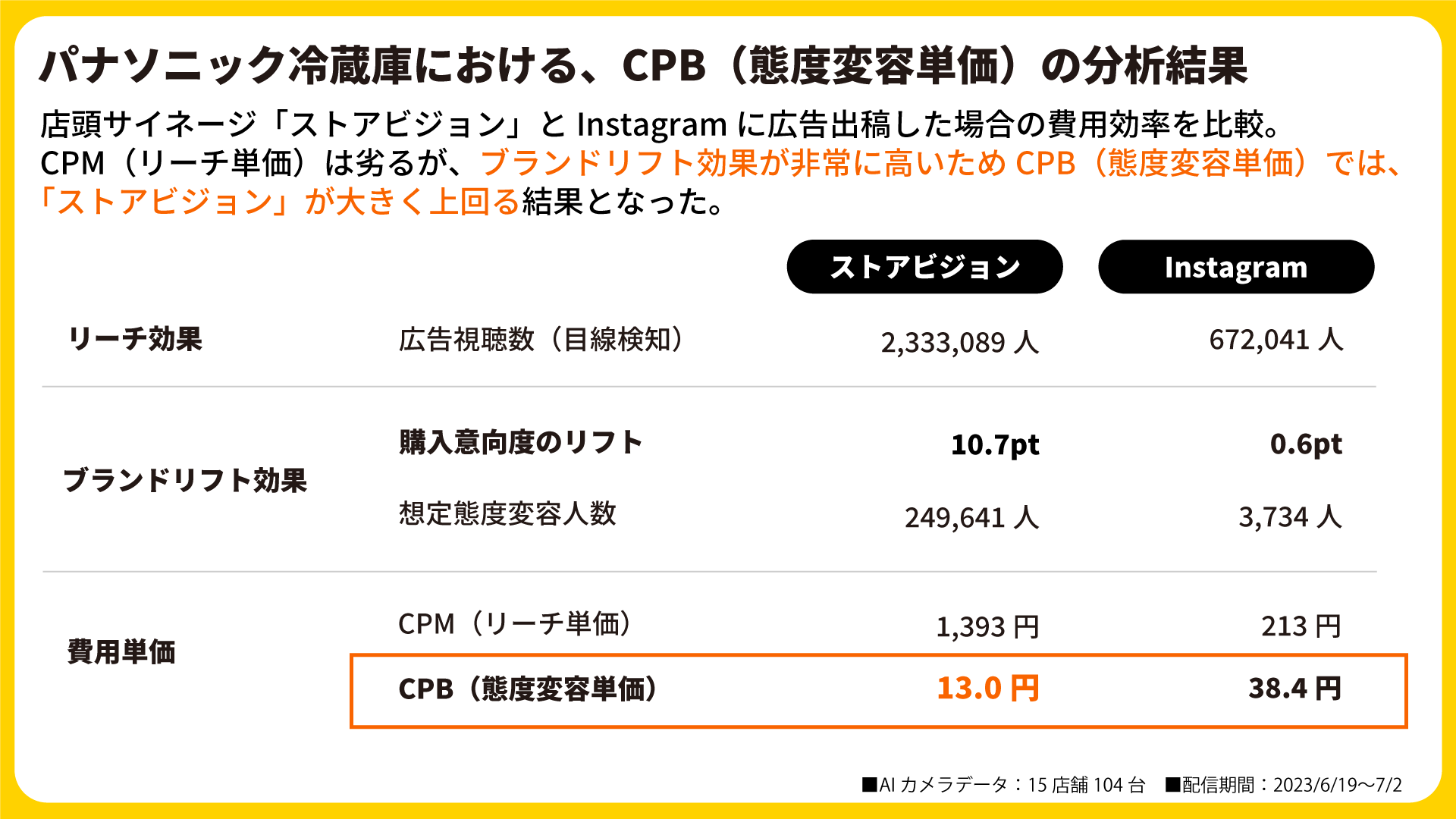 CPB(態度変容単価)はSNS広告の1/3!非食品分野であるパナソニック冷蔵庫のプロモーションでも店頭サイネージ広告の優位性が明らかに。