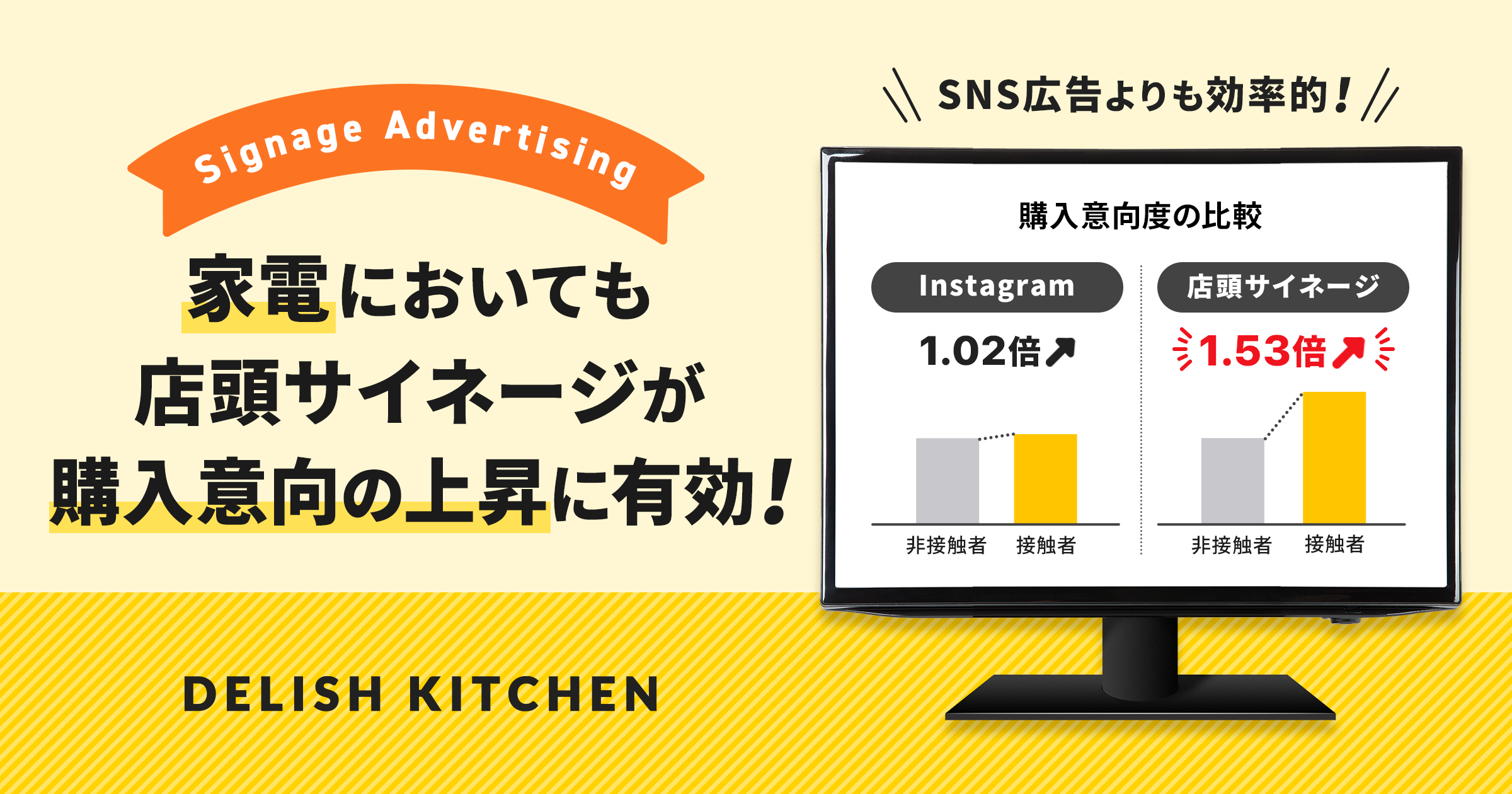 『DELISH KITCHEN』の店頭サイネージ「ストアビジョン広告」、家電でも1.5倍以上のブランドリフトを実現