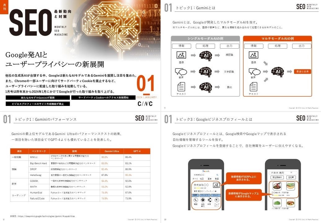 1月号の月刊SEOでは、主にGoogleからのリリース情報をピックアップし解説するとともに推奨アクションを記載しています。