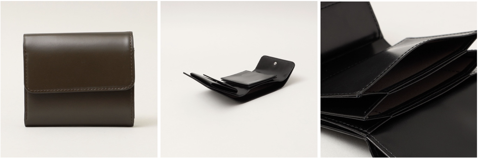 シリーズは、ロングウォレット、コンパクトウォレット、3つ折りウォレット、カードケースの4商品です。カラーはそれぞれブラックとブラウンの2色展開です。どの商品も右利き、左利きに左右されず、使いやすいデザインになっています。また、ウォレットはオープンポケットの仕様になっているため開きやすく、お札やカードが取り出しやすいデザインになっています。さらに、開閉しやすいよう滑らかなファスナーを採用し、配色は本体色がブラックにはシルバーを、本体色がブラウンにはゴールドを配色し、コントラストを高めました。