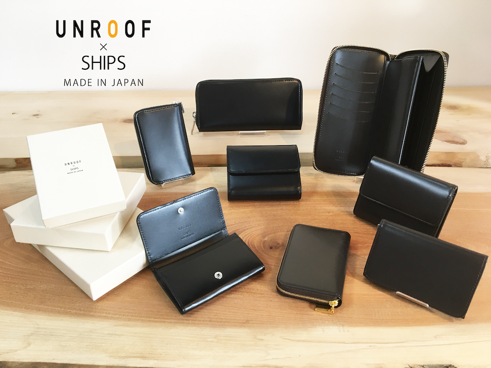 「UNROOF」は、性別問わず使えるデザインや、左利きの人でも使えるようなデザインなど、ボーダレスなものづくりのコンセプトに沿うよう、SHIPSではシーンを問わず、また性別も問わないジェンダーレスに使えるデザインと素材を採用しました。また、本シリーズでは角に丸みを出すデザインで統一し、柔らかさを演出しています。製作は全て東京都東村山市にある「UNROOF」の工場で革職人が一つずつ行っています。素材、生産工程の全てが「Made in Japan」のコラボレーション商品です。