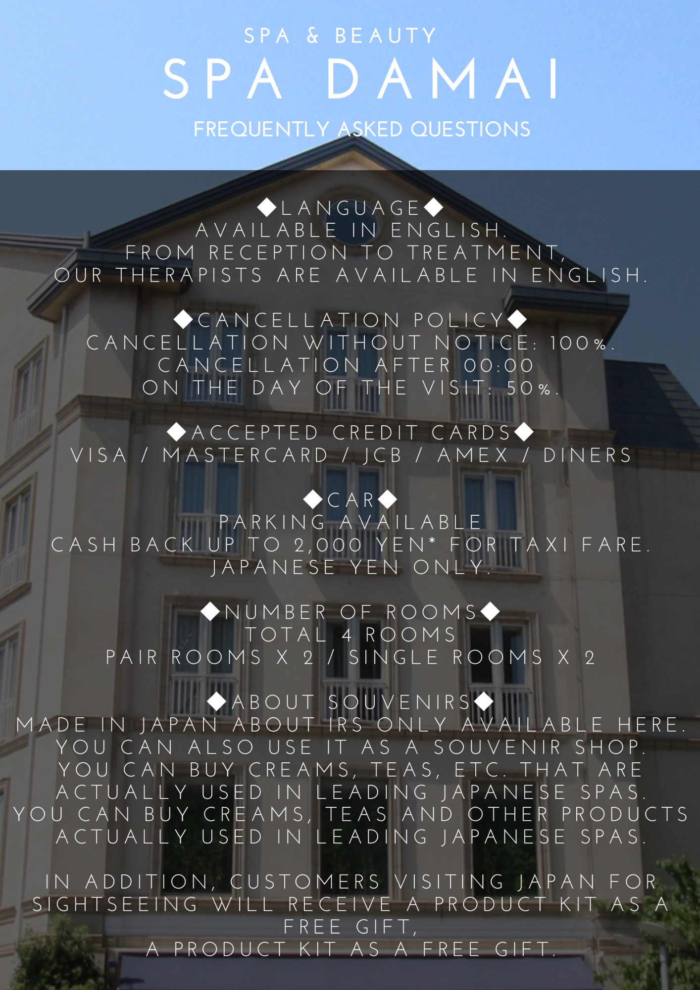 再び日本に来て利用してくださる方、数あるスパの中から当店を選んでくださった訪日外国人の方々への感謝の気持ちと、より「ダマイ」を好きになっていただきたいという思いから当サービス開始に至りました。