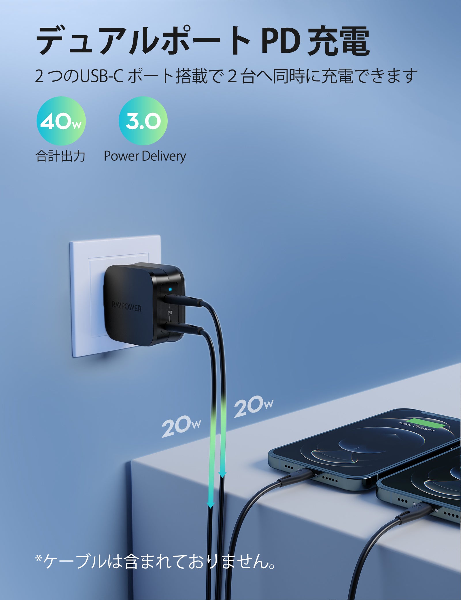 【RAVPower】40W出力で小型コンパクト。USB-C2ポート搭載ハイコスパ急速充電器"RP-PC152"を発売