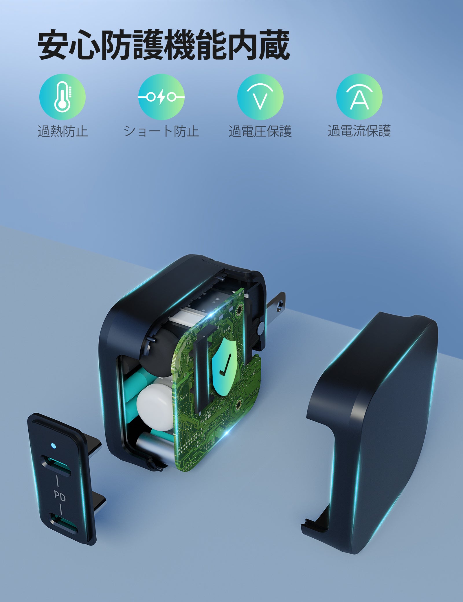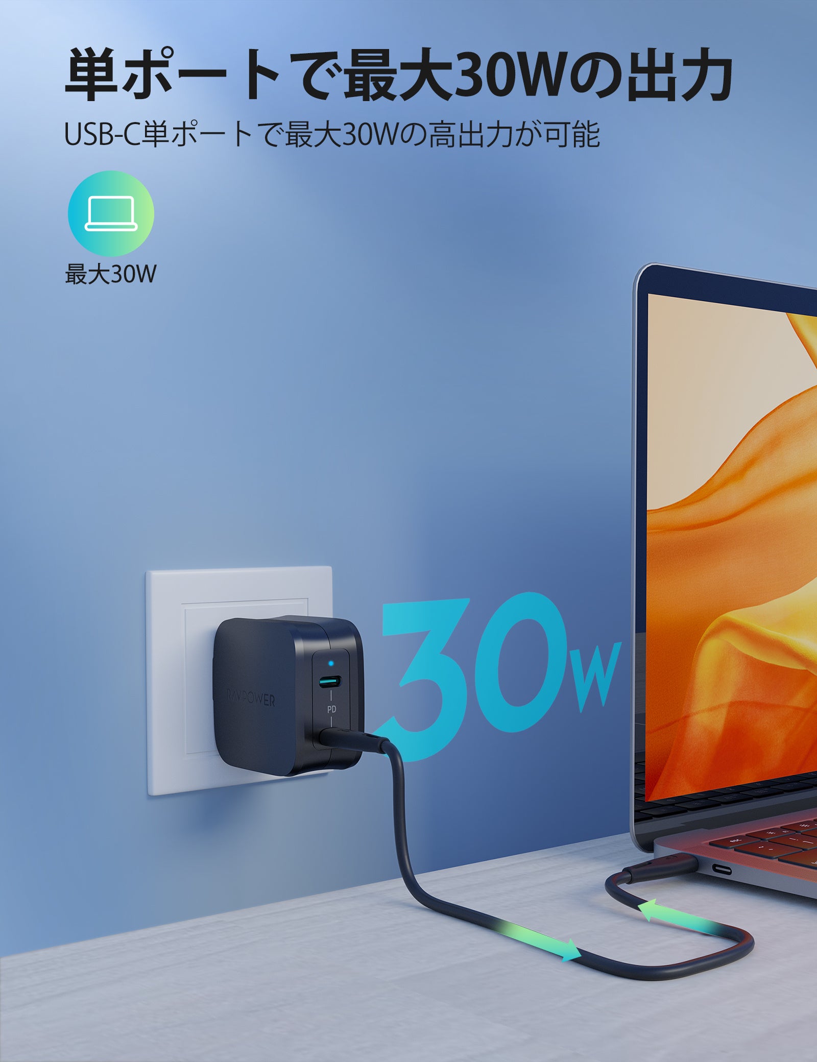 ■ 40W出力対応、単ポート最大30W出力に対応してお手持ちのスマートフォン/タブレットを高速充電することが可能です。コンパクトながらスピードも発揮できる高出力充電器に仕上がっています。