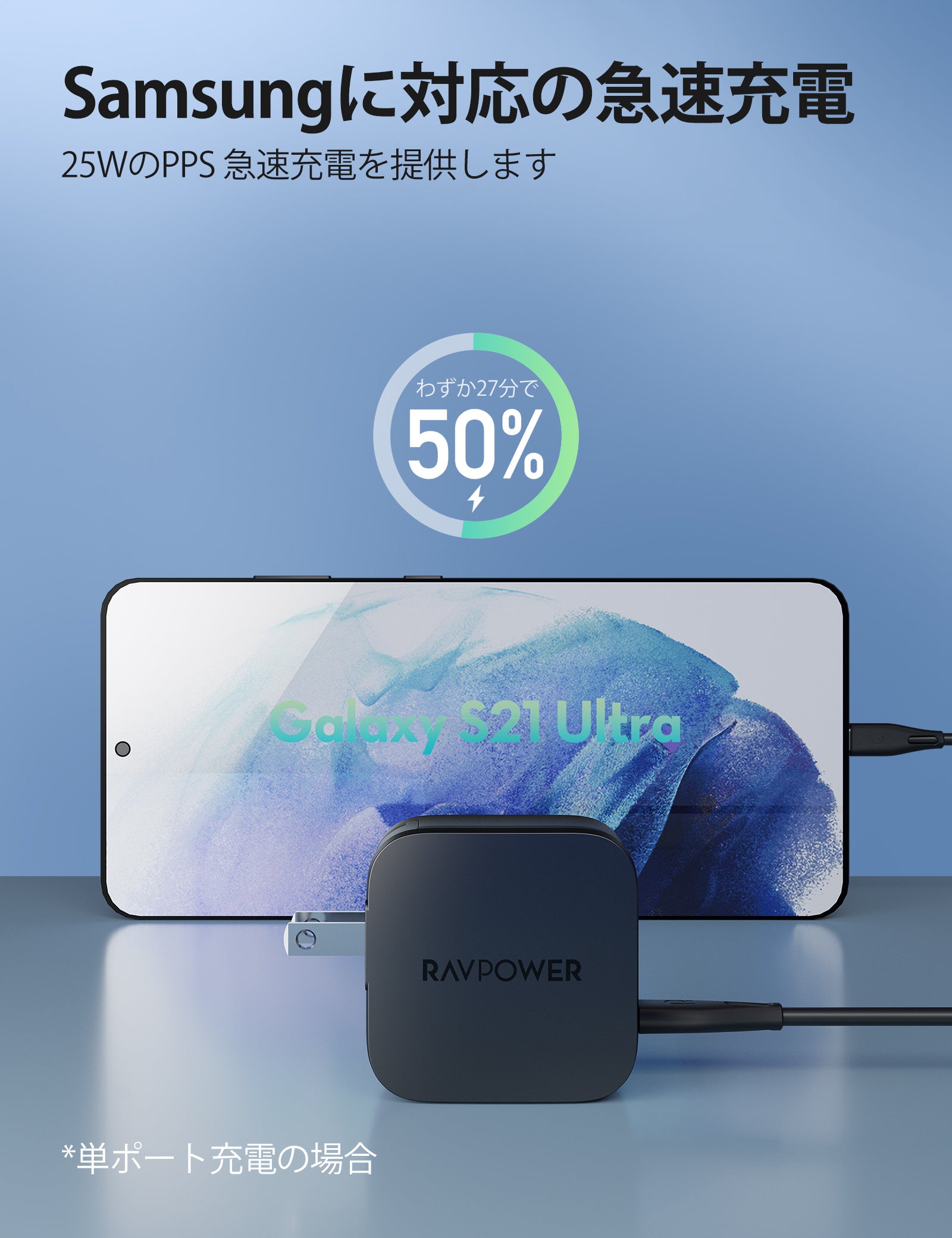 ■ PPS規格に対応。より最適化された充電器をPPS(Programmable Power Supply)規格に対応し、Galaxy S20などのスマートフォンに安定して最適化された充電を供給します。デバイスを熱くすることなく最短の時間で充電することが可能です。