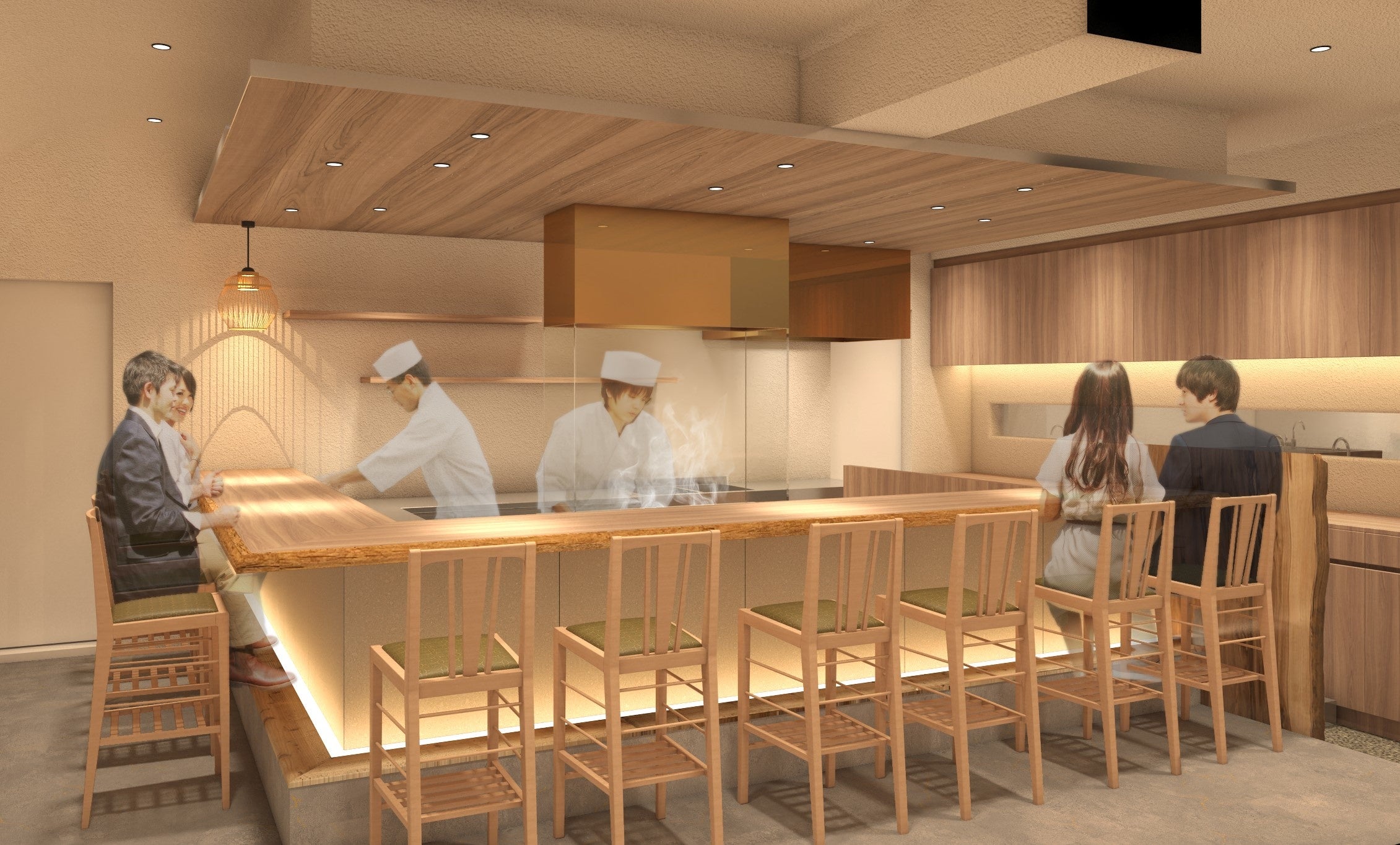 寿司や焼鳥、ラーメンといった海外でもなじみの深い「日本食」を提供するため、高級感がありつつ、「和」の雰囲気を全面に押し出した落ち着きのある内外装です。お客様とのコミュニケーションを取りやすいように、カウンター席がメインとなります。