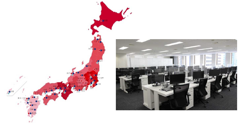 TKPが運営する全国400以上の施設において、最短2週間でネット回線や電気設備などのインフラが完備されたコールセンターを導入可能です。コールセンター立ち上げにあたって課題となるスペースの確保やノウハウ、開設までのリードタイムの短縮をTKPが解決いたします。