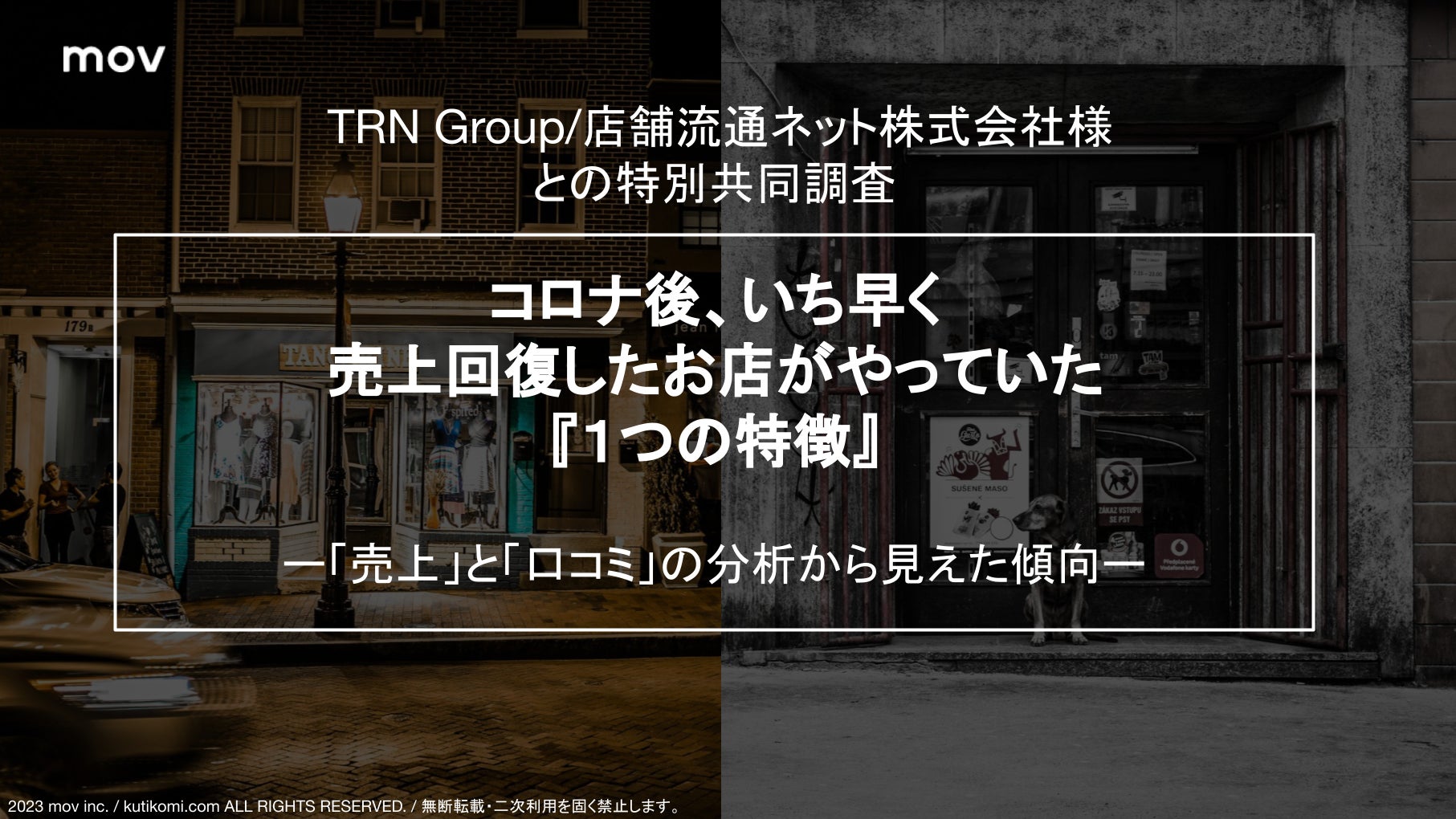 本レポートは、 コロナ明けにいち早く売上回復が見込めた店舗群の特徴を口コミの観点から紐解いております。レポートは無料にてご覧いただけます。自店舗の運営のヒントに、是非本レポートをご活用ください!
