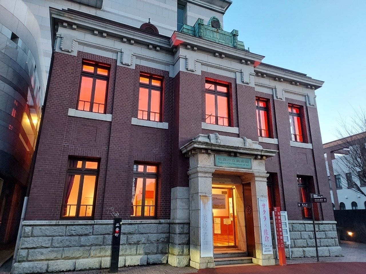 佐倉市立美術館のエントランスホールとして活用されている、大正時代に建築された旧川崎銀行の建物内部を桜色にライトアップします。夜間は、外に漏れる建物内のピンクの照明が新町通りに彩りを与えます。また、イベント期間中は、収蔵作品展「さくらと花と」を開催しています。