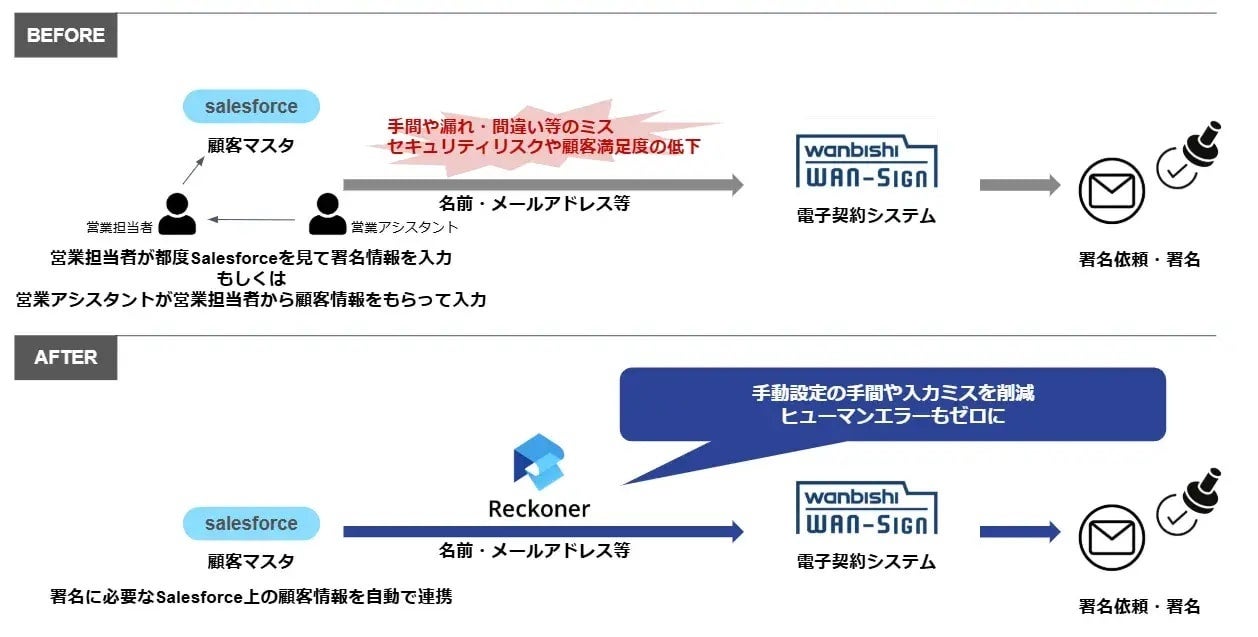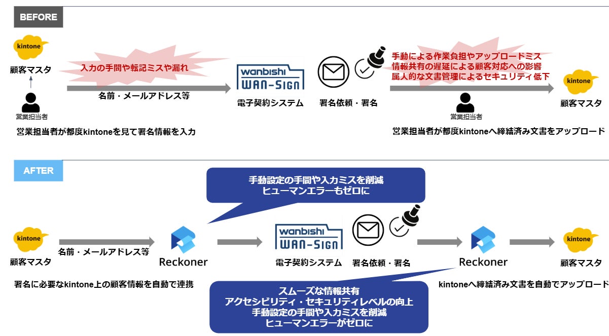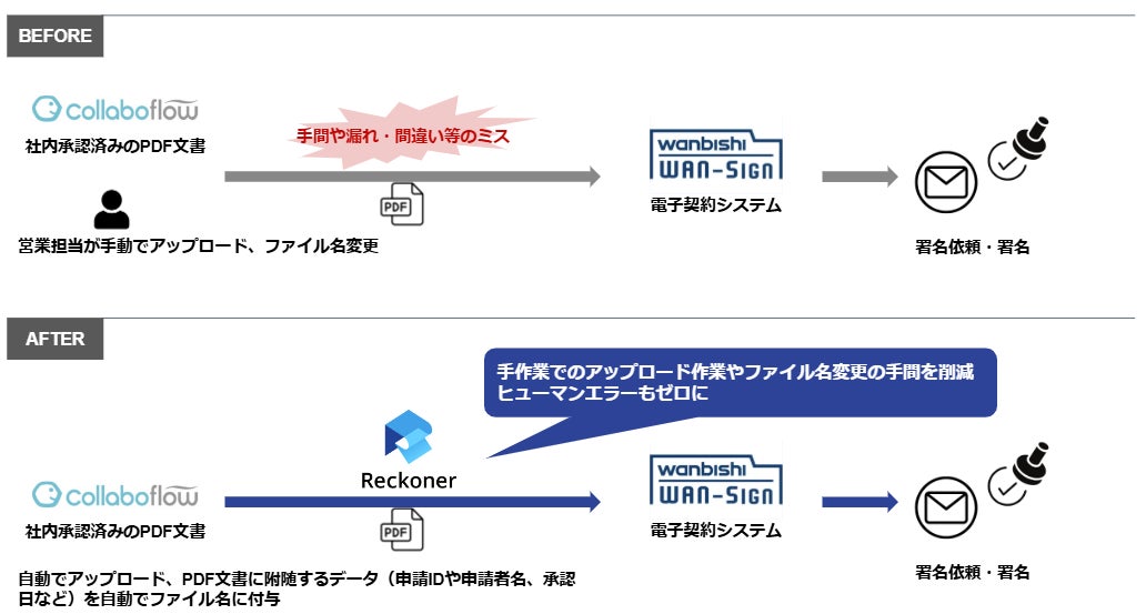 データ連携ツール「Reckoner」、電子契約・契約管理サービス「WAN-Sign」と連携開始