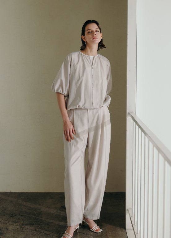 テーマは「POSITIVE BREEZE」新しい丈バランスのクロップドワイドパンツや配色ニットなど、赤を効かせながら華やかさと今年らしさを両立したスタイルを提案する、2026年夏コレクション