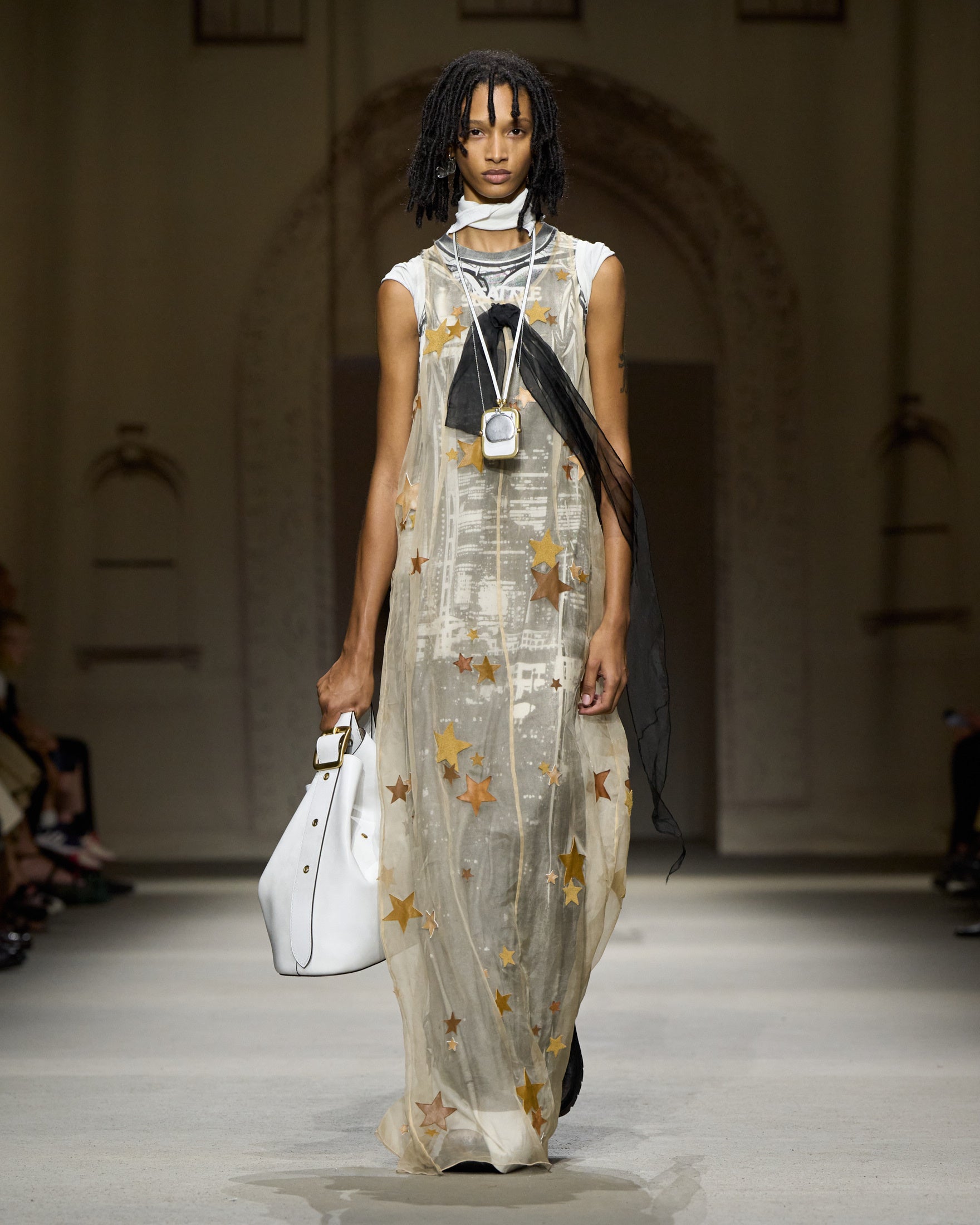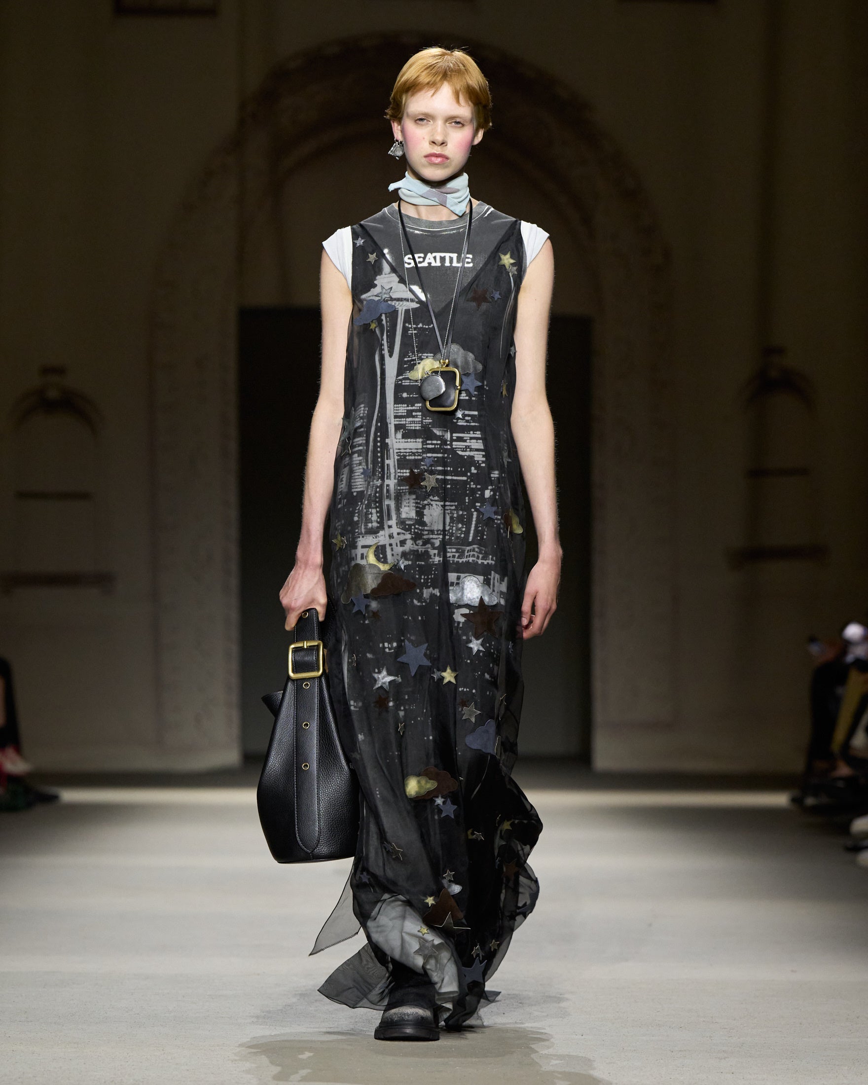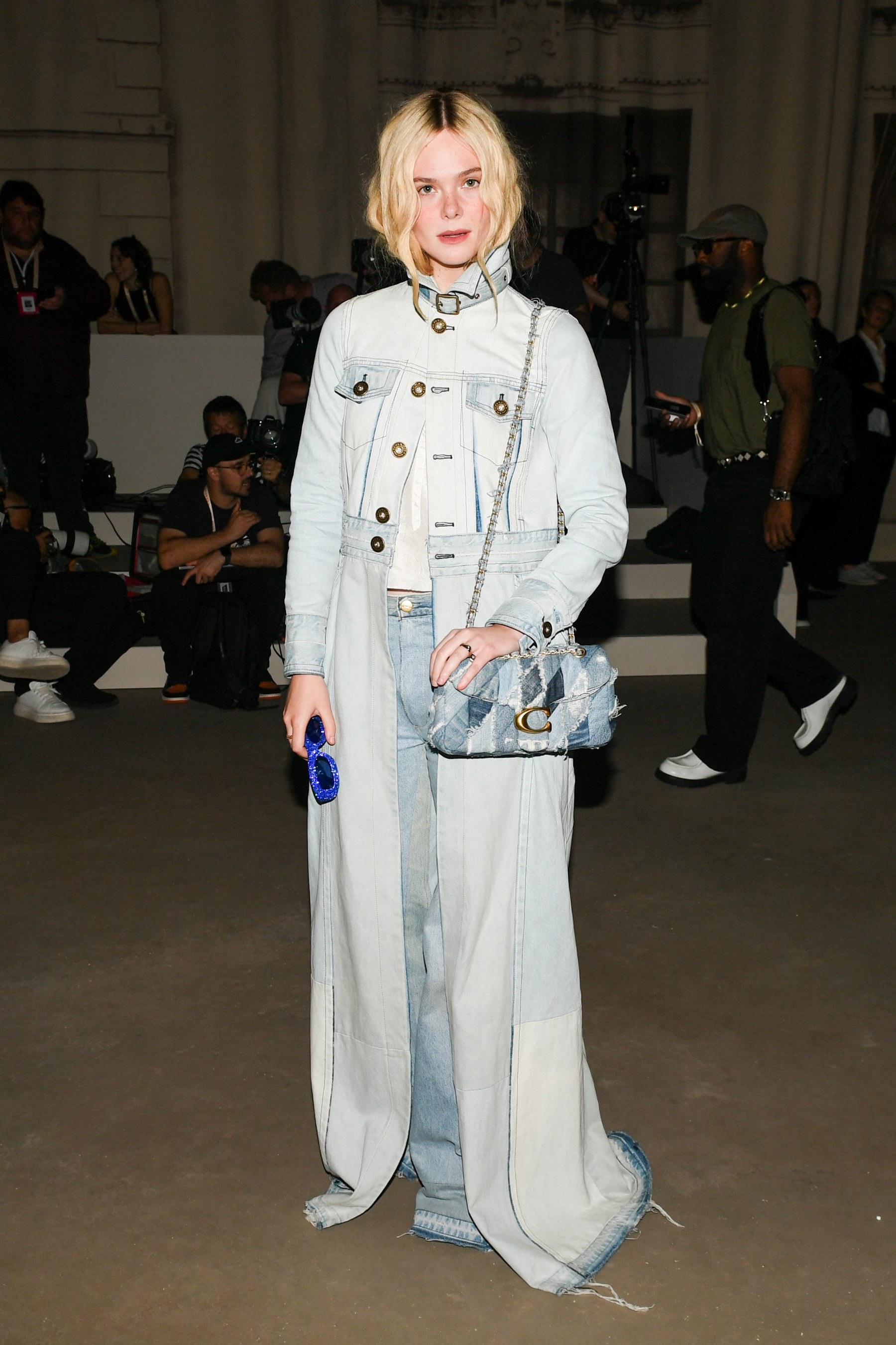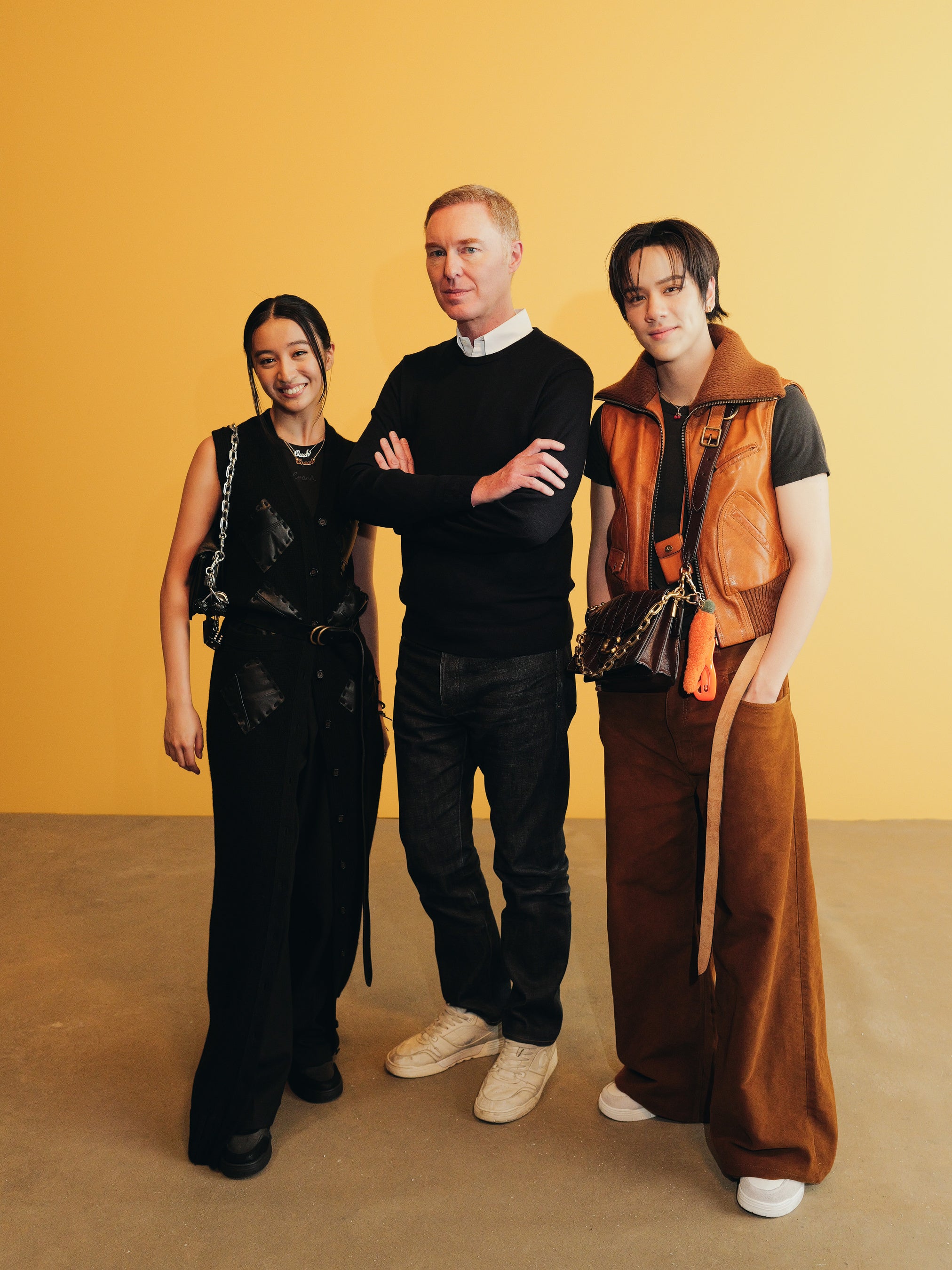 ショーでは、来場者は暗い空間を通り抜け、ニューヨークの壮麗な建築や広がる景色を描いたセピア色のキャンバスに囲まれたプレゼンテーションエリアへと誘導されました。光と影に包まれた背景の中、モデルたちはまるで街を歩く人々のように、都市の日常が織りなす絶え間ない流れの一部として登場しました。また、スペシャルゲストとして、コーチの新キャンペーン "Revive Your Courage (進もう、私の心のままに)" に登場したエル・ファニングやソヨン、グローバルアンバサダーであるチャールズ・メルトン、ストーム・リード、ジェイソン・テイタム、日本からはグローバルアンバサダーの Kōki,、そしてタイの人気俳優コーラパット・クッパンなどが来場しました。