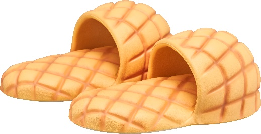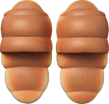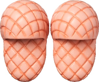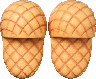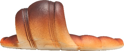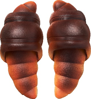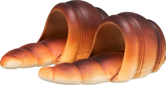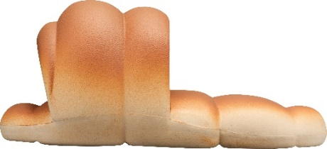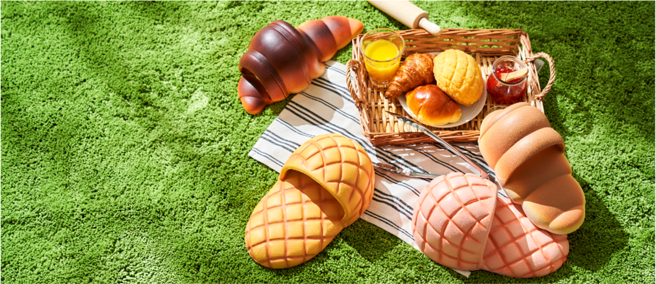 サンダルとして履く事ができ、ほどよい弾力となっていてパンを足元から味わう事ができるユニークなサンダルです。パンのフォルムを尊重したデザインで、つま先が出るロールパン・クロワッサンと、つま先を覆うタイプのメロンパン・イチゴメロンパンの2タイプ。まるでパンに足を通しているかのような、不思議な感覚を楽しめます。
