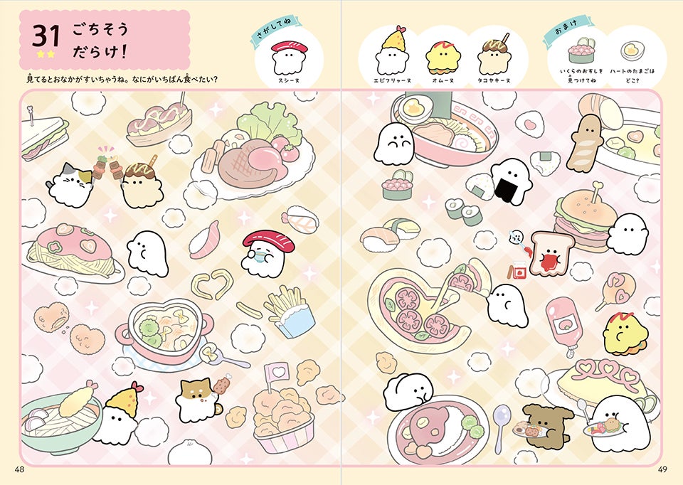 本書は、そんなオバケーヌたちを、さまざまな絵の中から探し出すえさがしブック。