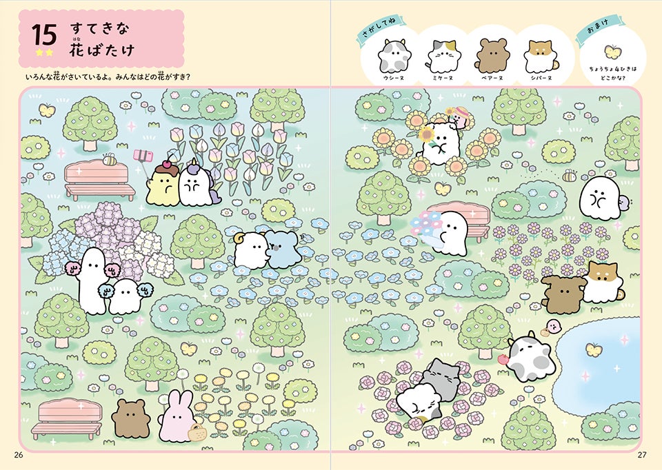 お花畑、お誕生日会、遊園地、深海、おかしの国など、お子さんのワクワクやあこがれをかきたてる舞台ばかりで、めくってもめくってもすみからすみまで「かわいい」がいっぱいです。