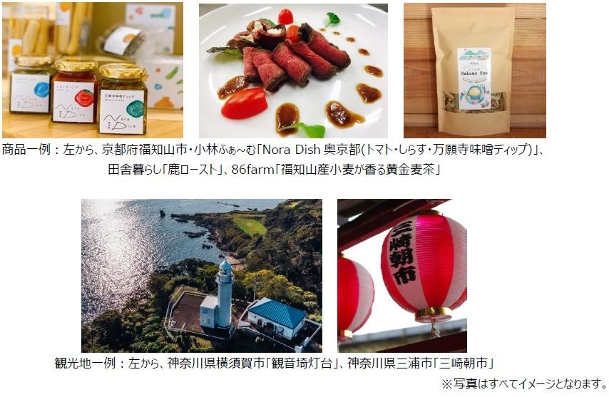 各地域の生産者のストーリーを伝え、その土地ならではの魅力ある商品を店舗で紹介するとともに、インターネットショッピングモール「ANA Mall」での商品販売やモバイルペイメントサービス「ANA Pay」でマイルを使った商品購入など、オンライン(デジタル)と、オフライン(実店舗、現地)を繋ぐ新たな価値を提供し、「京都府福知山市」「神奈川県横須賀市・三浦市」地域のファンづくりを図ってまいります。