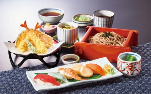 サガミ自慢の麺・天ぷら・寿司・茶わん蒸しをセットにした「サガミのこだわり」を満喫できるメニューです。