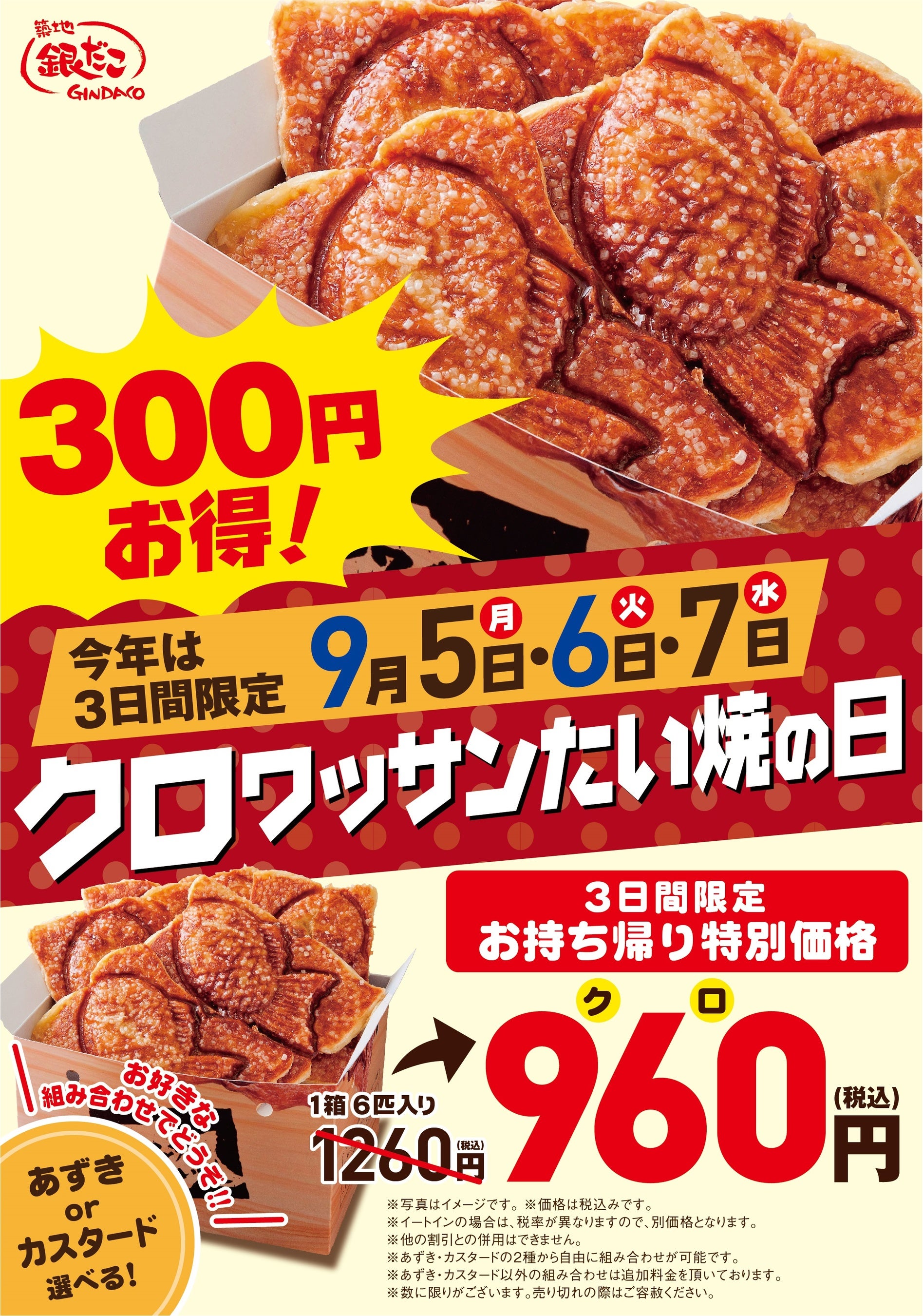 【3日間がお得!】9月6日(火)は、“クロワッサンたい焼の日” 特別価格でご提供!