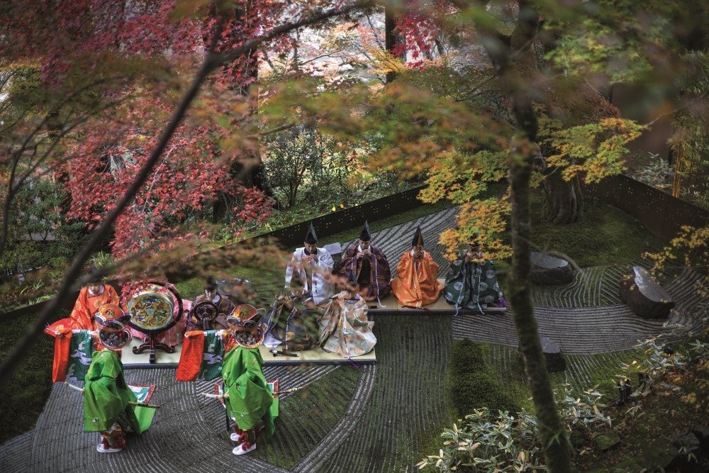 「奥の庭」に立つ樹齢 400 年のオオモミジの下で、平安貴族の世界観の追体験ができる催しです。源氏物語に描かれた情景を映した奥の庭で、雅な舞と雅楽の幽玄の音色を楽しむことで、忙しない日常を忘れて優雅な気分になってほしいと考えています。