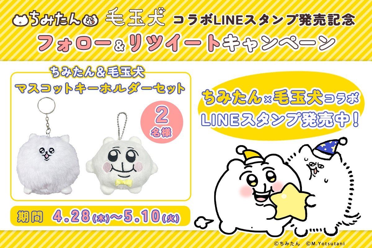 さらに、LINEスタンプの発売を記念して、本日4/28(木)より「毛玉犬」と「ちみたん」のグッズセットが当たるTwitterキャンペーンも実施いたします。