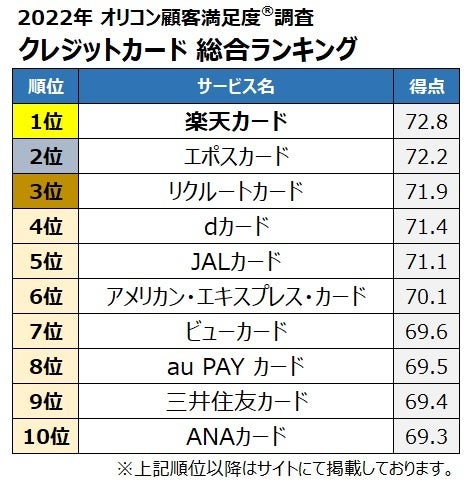 2022年 オリコン顧客満足度(R)調査 クレジットカードランキング